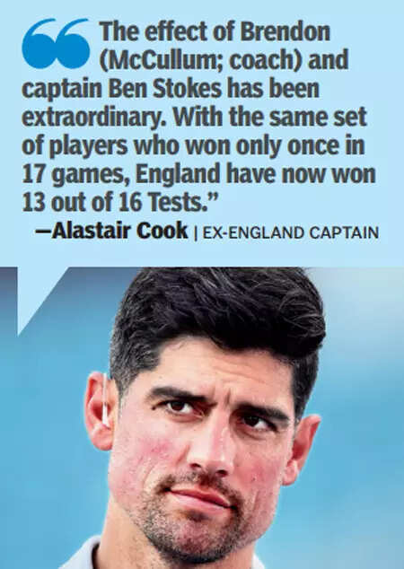 “Maybe Ben Stokes and Brendon McCullum would have liked to play a different player, or I would have had to play differently to get into the Test team. But that’s fine, because the effect that these guys are having on English cricket is phenomenal. They are breaking down barriers of Test cricket, scoring seven runs in an over in a session against a superb Australian attack, which is unheard of,” Cook told TOI ahead of England’s fifth Test against Australia at the Oval, which starts on Thursday.