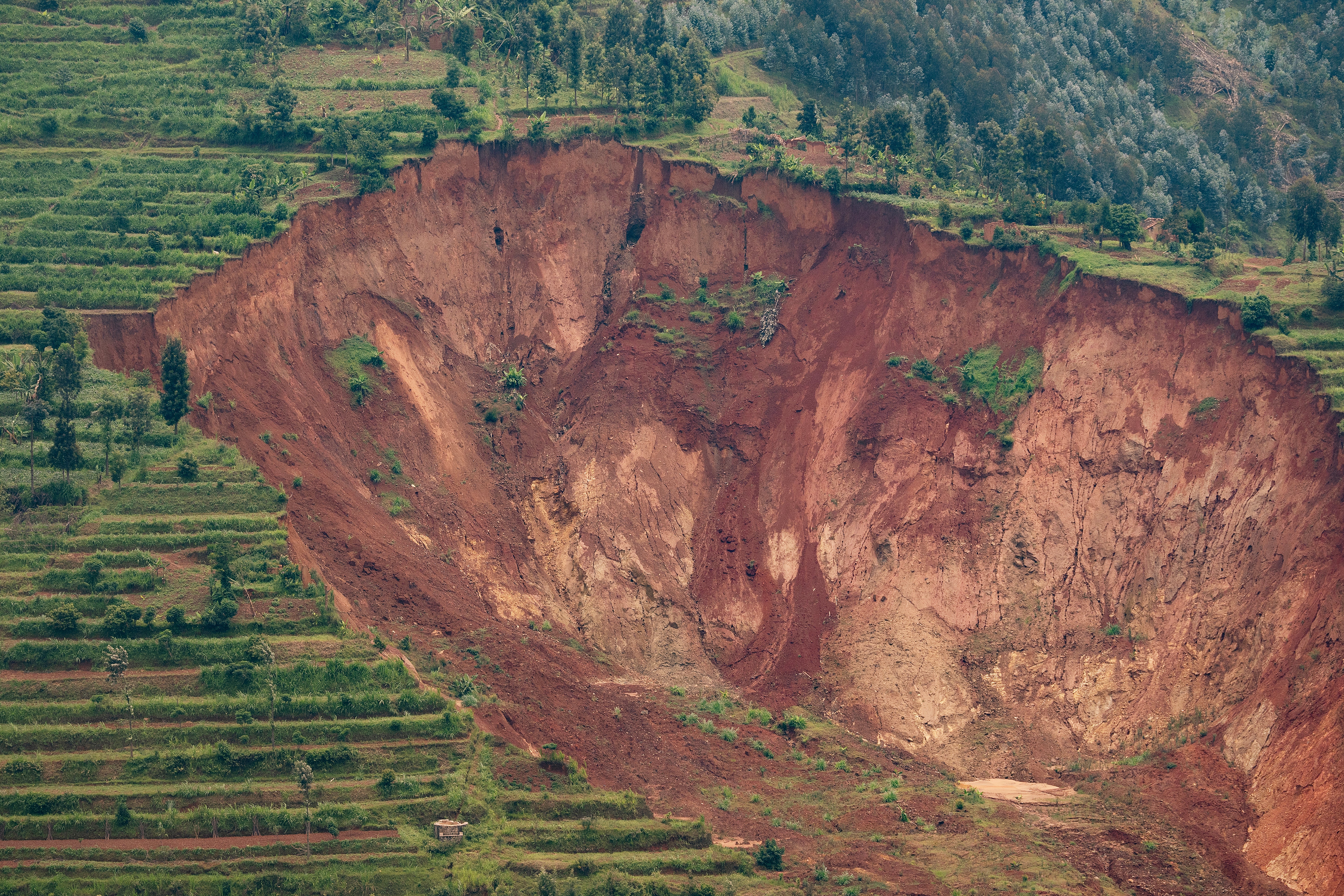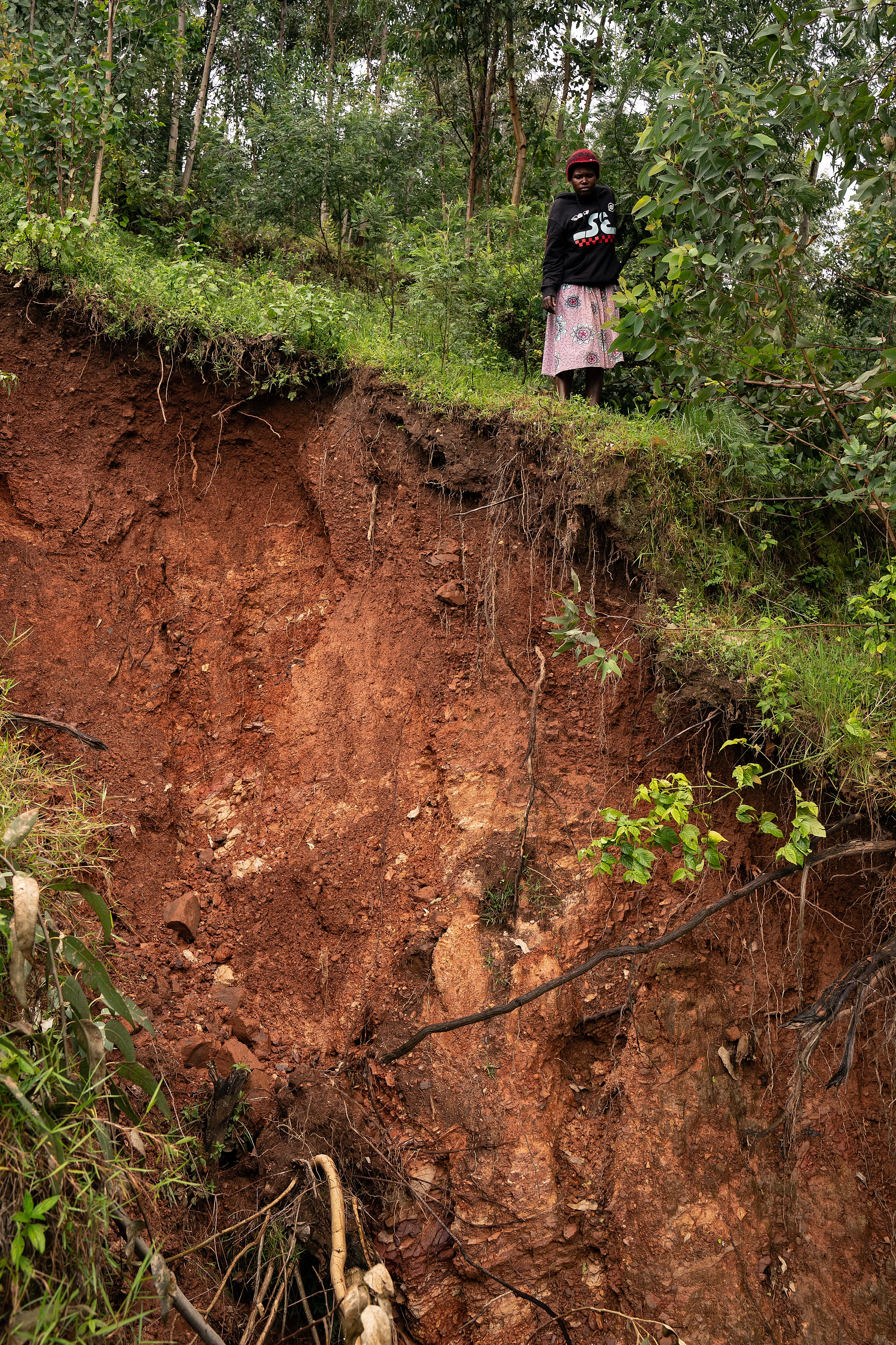 The threat is demonstrated by her neighbour Anne Marie Mukankuranga, whose kitchen and toilet collapsed on the area of higher ground due to storms just two days earlier.
