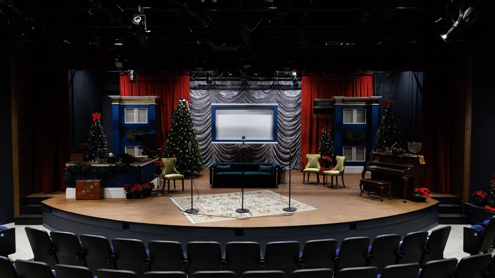 And even though workers were still on site Monday, the stage sparkled with Christmas trees, a menorah and other stage pieces in preparation for the the company’s 22nd annual production of “It’s a Wonderful Life: Live in Chicago!” based on the Frank Capra movie and directed by Whiteside.