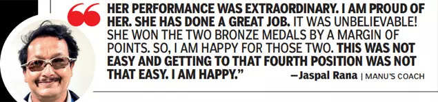 On the momentum that she rode here, Manu said: "My coach Jaspal Rana had prepared me for this. In the camp, during normal training, he got me ready for a long haul... he told me you will have so many days of competition. So showed me how to stick to my routine, kept myself physically and mentally fit. I was well prepared, which is why my performance was great."