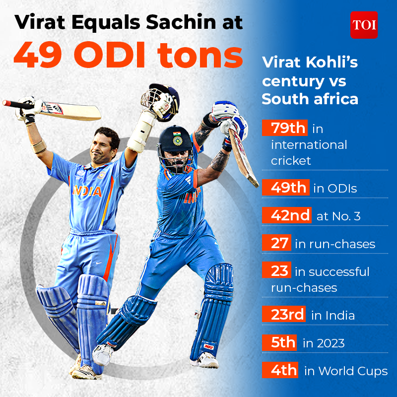 On Sunday, Virat added another feather to his illustrious cap when he notched up his 49th ODI century during ICC ODI World Cup match against South Africa. With this century, Kohli equalled Tendulkar's record of 49 ODI centuries with a brilliant 101 not out against South Africa on his 35th birthday.