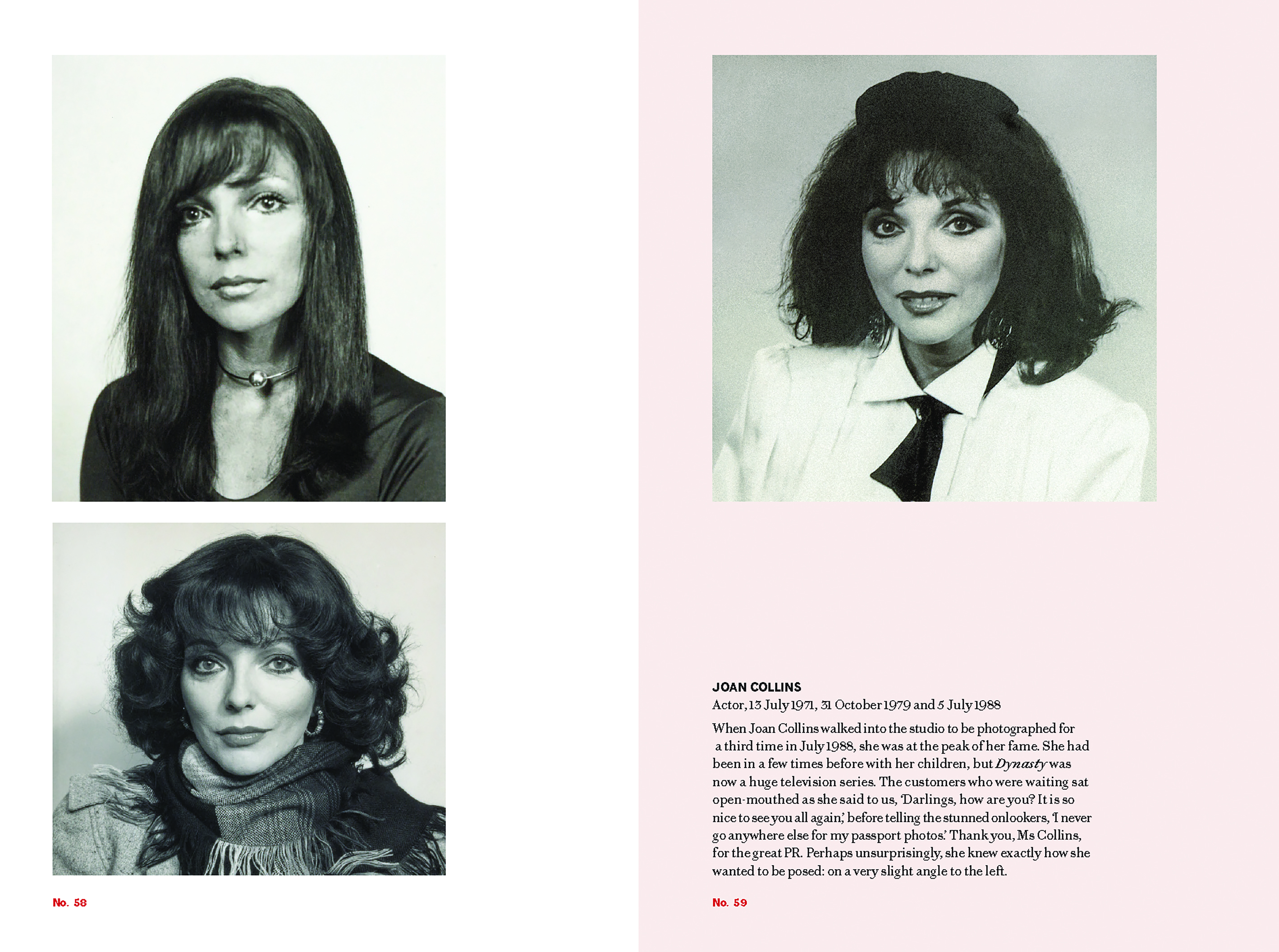 Dave's son Philip eventually took over, and it is his voice that runs through the book's captions and anecdotes. And he has some stories to tell. Joan Collins visited three times between 1971 and 1988. By her third visit she was at the peak of her Dynasty fame, and left the customers in the waiting room open-mouthed as she greeted staff with "Darlings, how are you? It's so nice to see you all again," before announcing she never goes anywhere else for her passport photos. She also knew exactly how she wanted to be posed.
