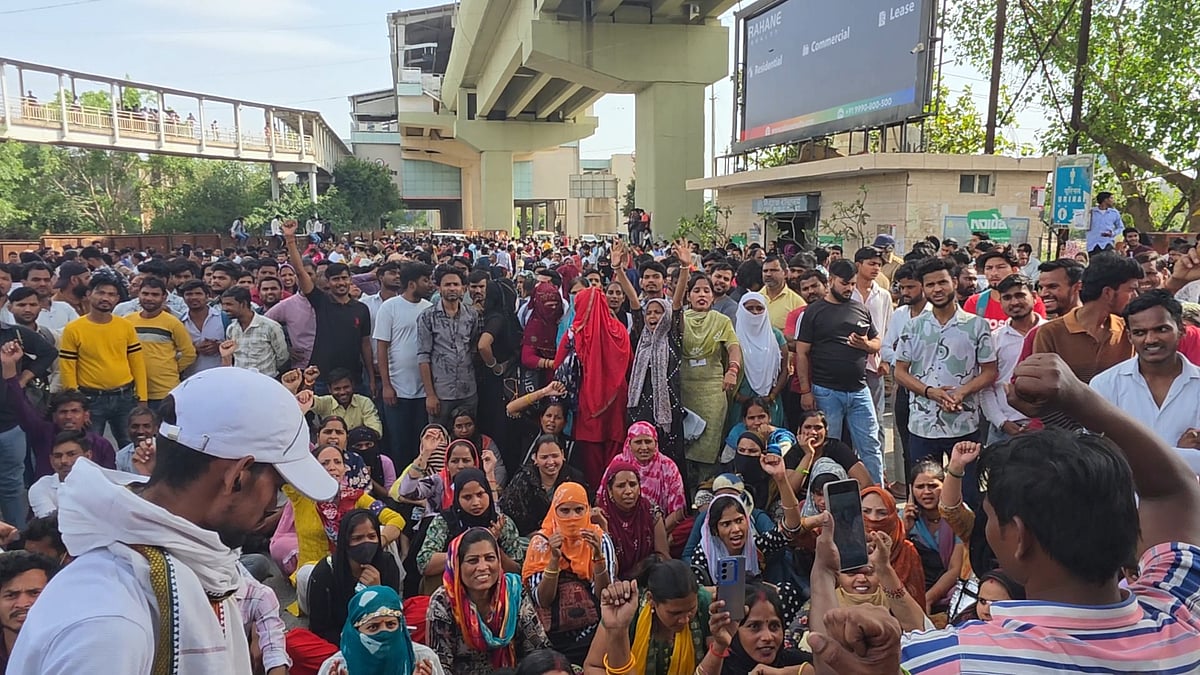 Since Thursday last week, hundreds of contractual workers blockaded the main road next to the NSEZ metro station in Noida. They stood in the sun demanding one thing: a minimum wage of Rs 20,000.