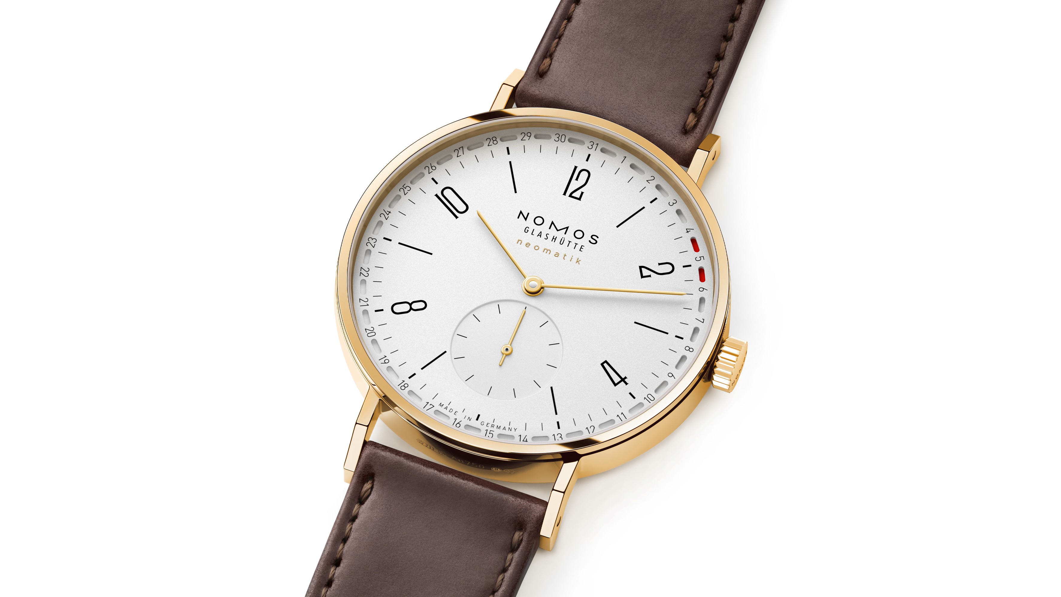 Last, but not least, is the Tangente Gold Neomatik 38 Update Dore. That pairs the gold case with a brown leather strap, for a more timeless appearance.