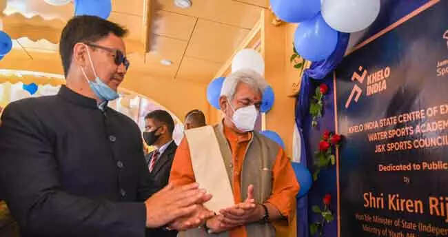 (Former Sports Minister Kiren Rijiju inaugurating the Khelo India Water Sports Academy in Srinagar - Twitter Photo)