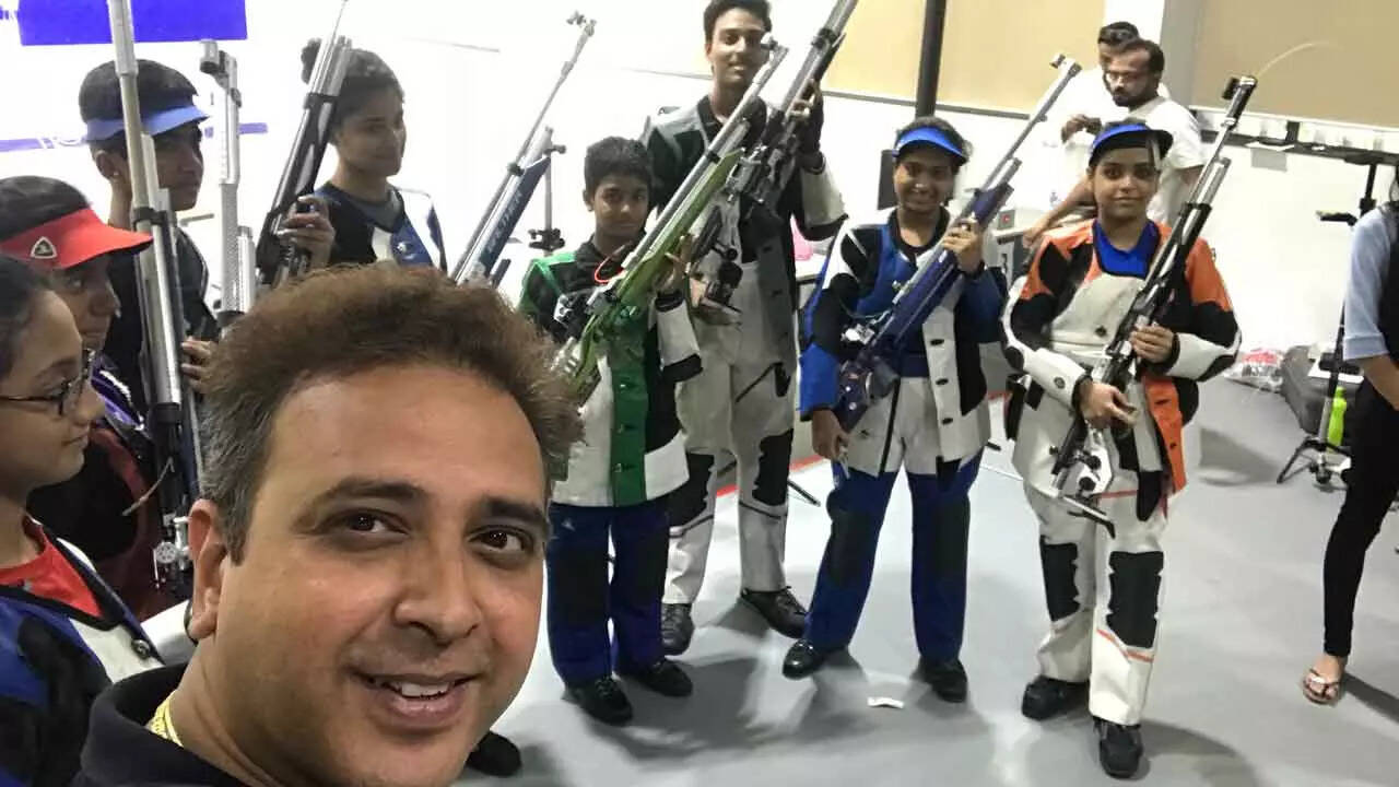 (File image of Joydeep Karmakar in a selfie with rifle shooters at JKSA - Image courteys: JKSA website)