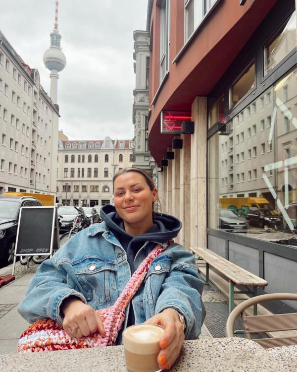 One of the snapshots shows Mork seated at a quaint street cafe, her radiant smile lighting up the frame as she gently cradles a cup of coffee on the table before her. The image captures a serene moment of tranquility amidst the bustling city life, showcasing Mork's ability to find beauty and contentment in the simple pleasures of everyday life.