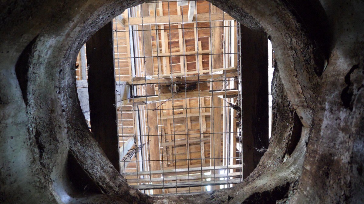 Looking up at the ceiling from the top level of the Rainbow Temple in northern NSW. (ABC North Coast: Leah White)