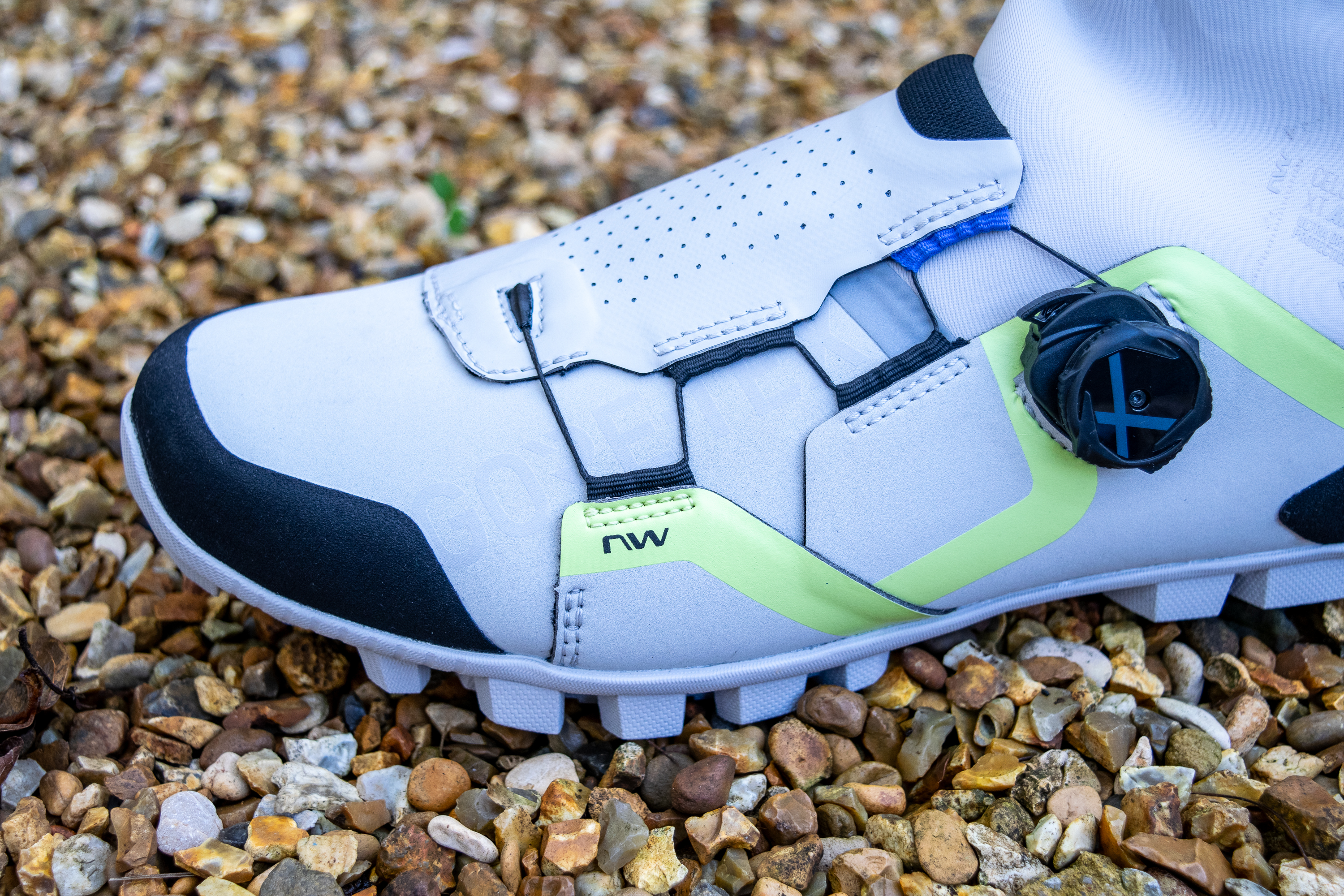 It's a shoe that has received plenty of Northwave's winter expertise. There's a Gore-Tex membrane for weatherproofing, added Primaloft insulation, and a neoprene ankle gaiter. But what caught my eye initially was the light grey and fluoro colourway (there are two others to choose from) and slightly less bulky silhouette.