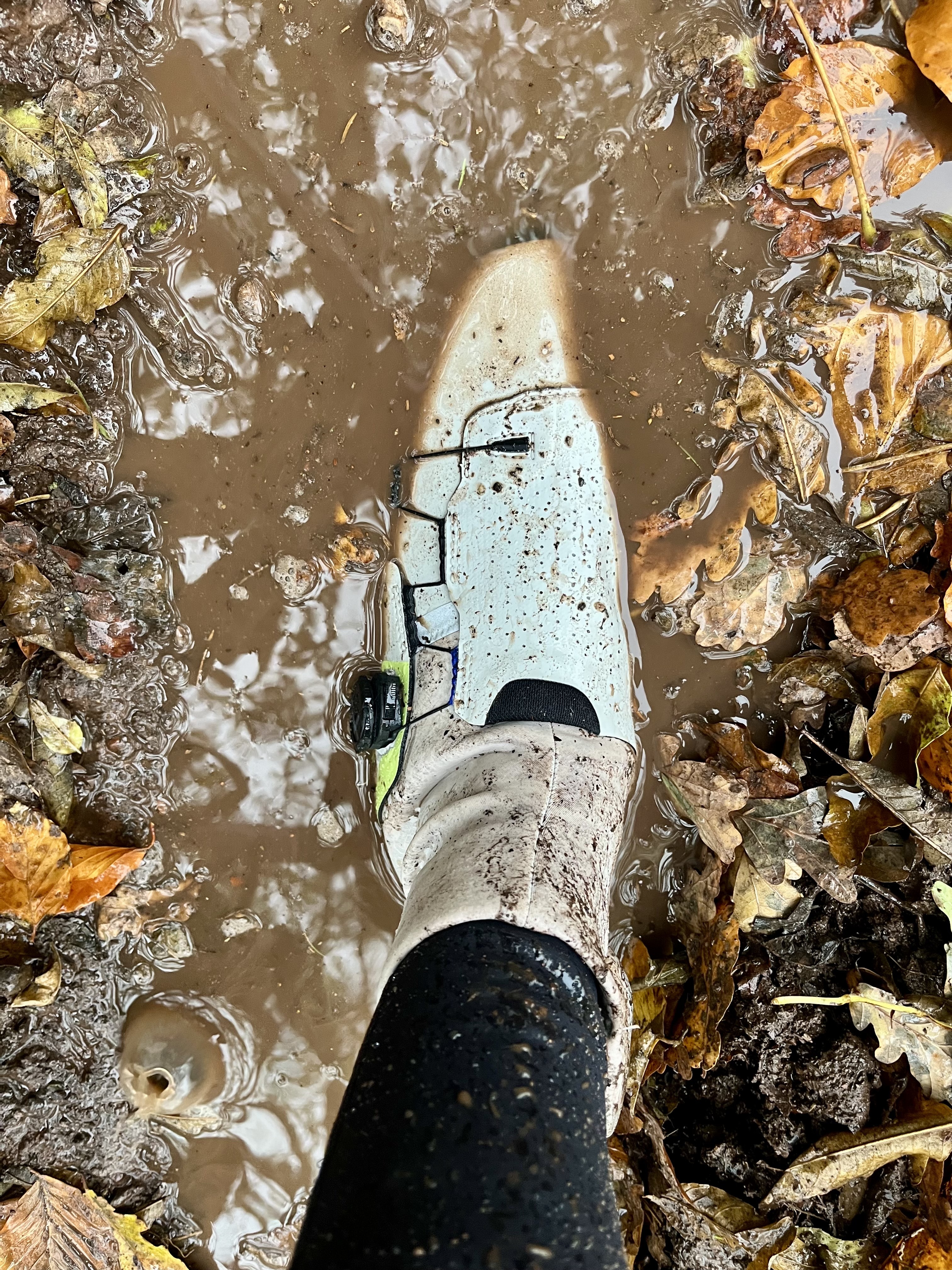 The weak point, as usual with winter shoes, is the ankle opening, and if water or spray is going to get in, it will be here. The worst day for me regarding this was on a snowy ride, with a lot of spray and slush on the road sections. I wore a pair of thin waterproof socks, which kept my feet comfortable, but the shoes did get quite wet inside. On days with a lot of spray or water, I'd recommend some thin waterproof socks for off-road use, generally though, protection is excellent.