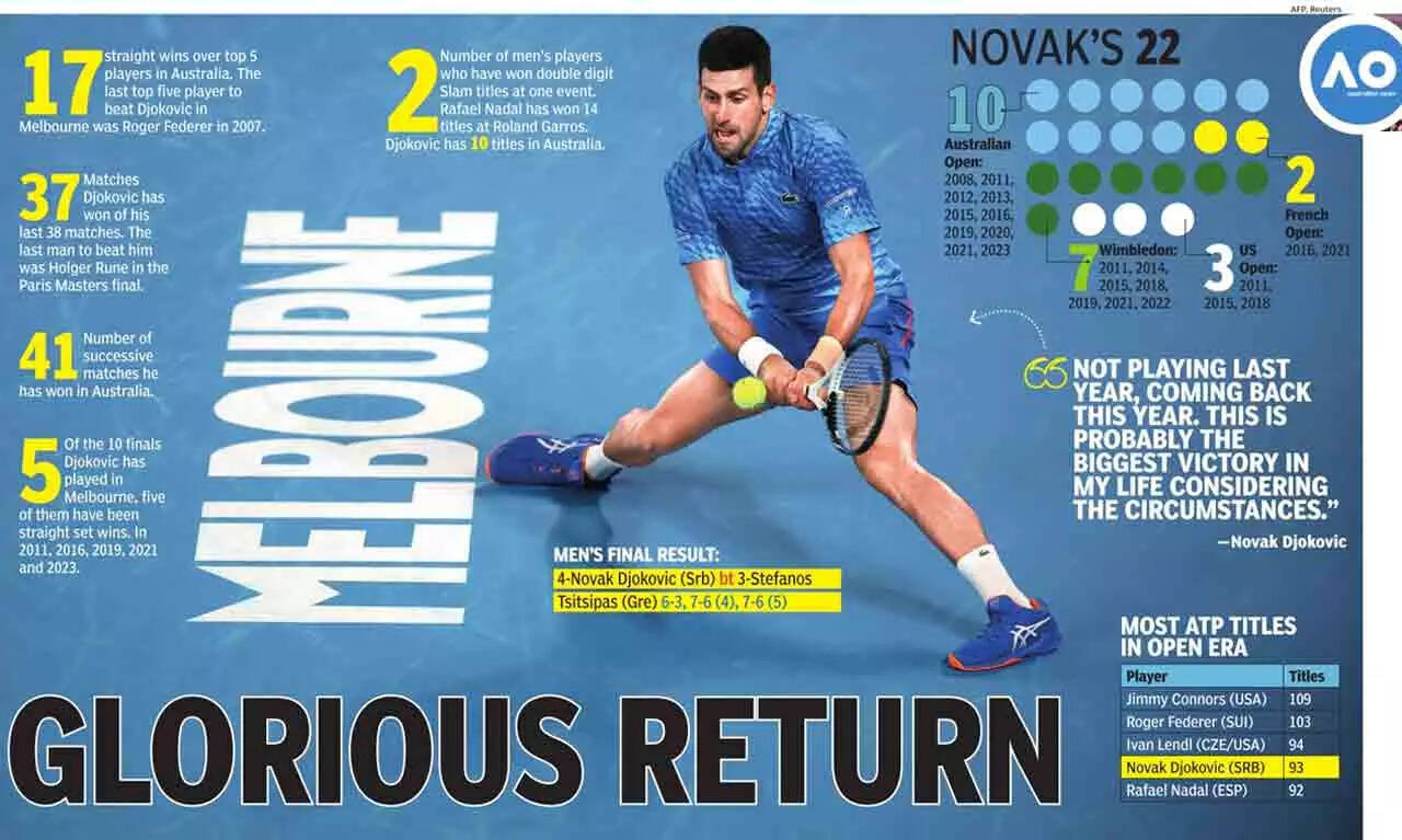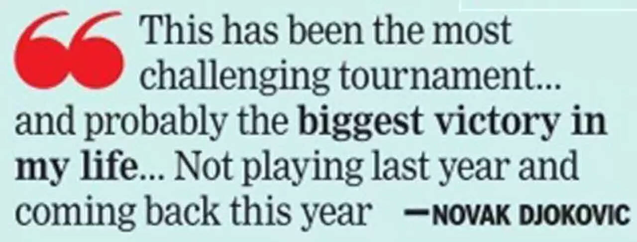 <p>The emphatic victory over Tsitsipas capped a remarkable return for Djokovic to Melbourne Park, having missed last year's tournament when he was deported over his Covid vaccination stance.<br /><br /></p>PTI6/10:'One of the most challenging tournaments'