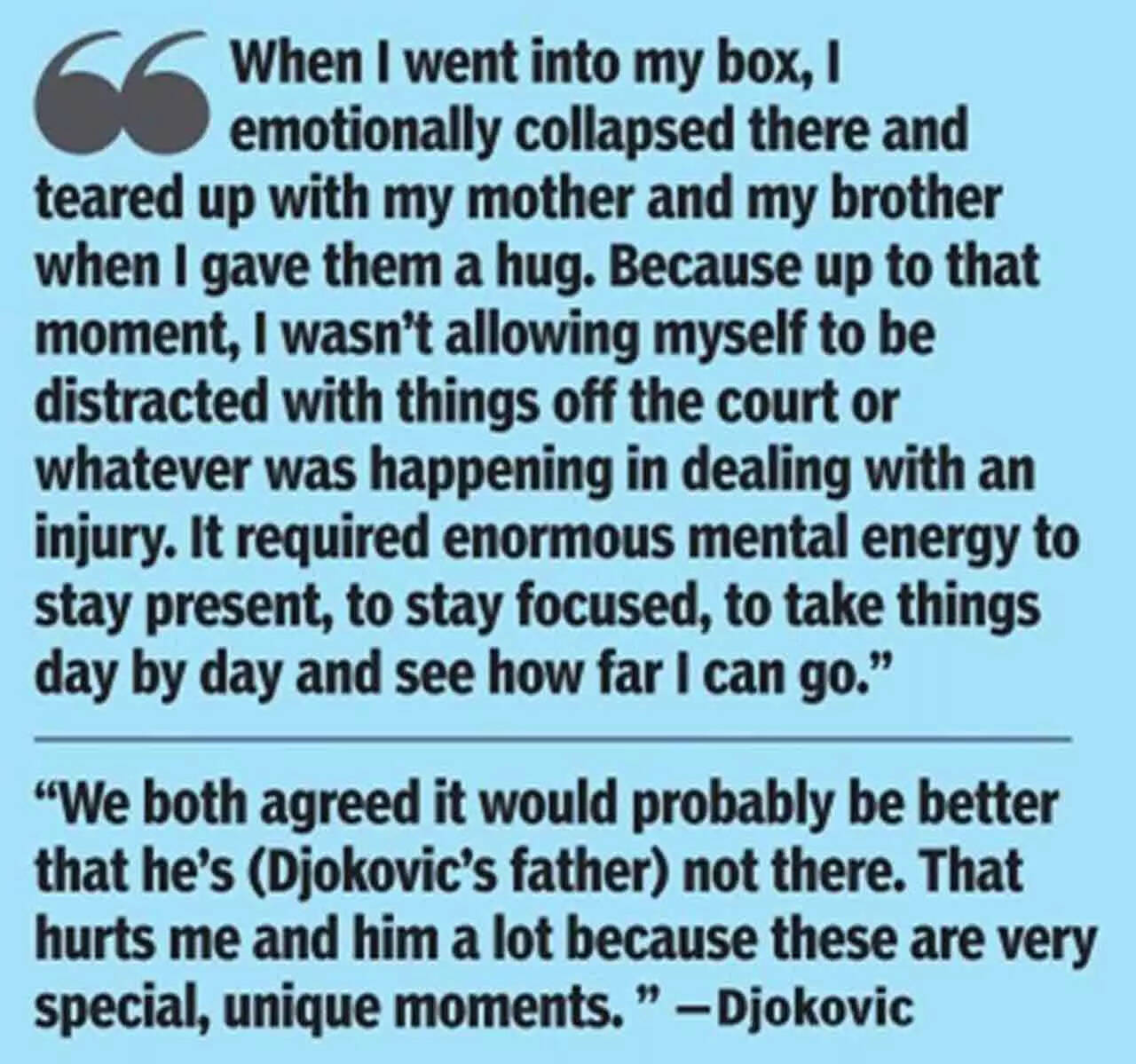 After Djokovic's 6-3, 7-6 (4), 7-6 (5) win over the third-seeded Greek Stefanos Tsitsipas, the 35-year-old rushed to his box. He climbed the courtside scaffoldings and exhaled, a shout that echoed across Melbourne Park.