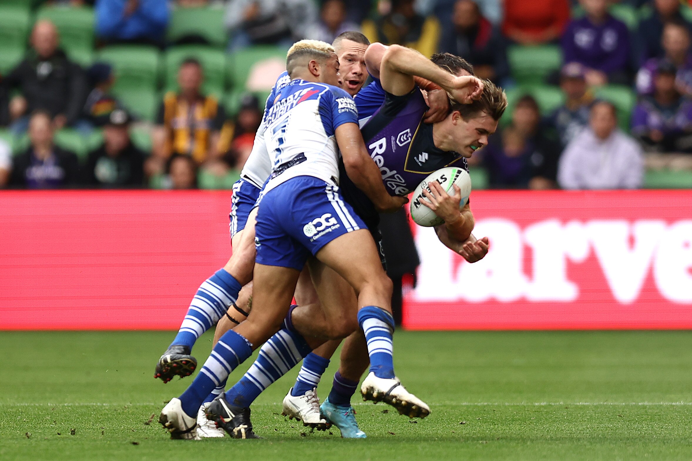 The Bulldogs boasted the second-best defensive record leading into the round, only conceding 33 points in four rounds, but the Storm blew past that midway through the second half.