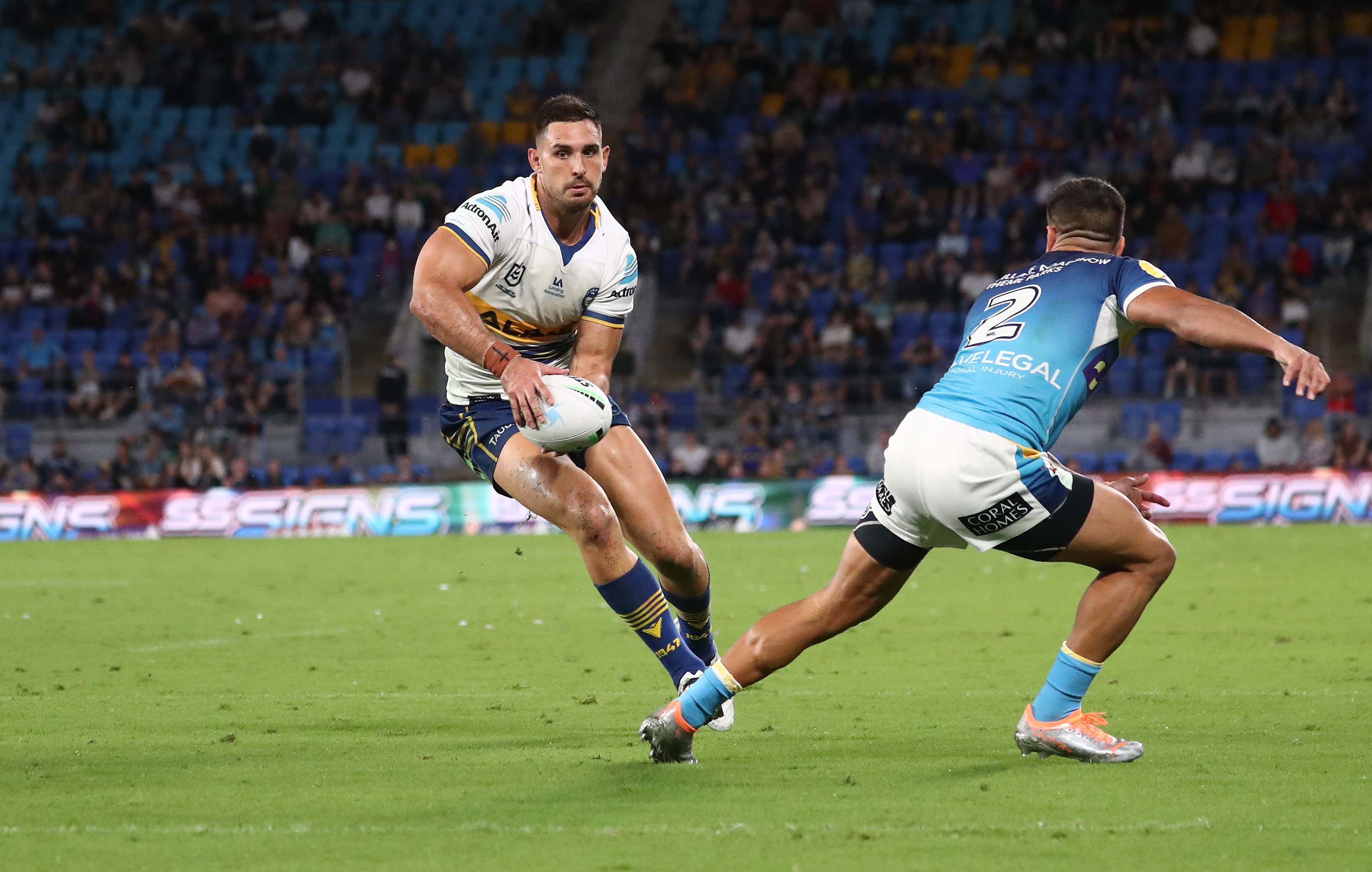 On the back of a Clint Gutherson double, the Eels were cruising with a 20-0 lead in the second half before Gold Coast twice deliberately conceded penalties to use their captain's challenge successfully to score.