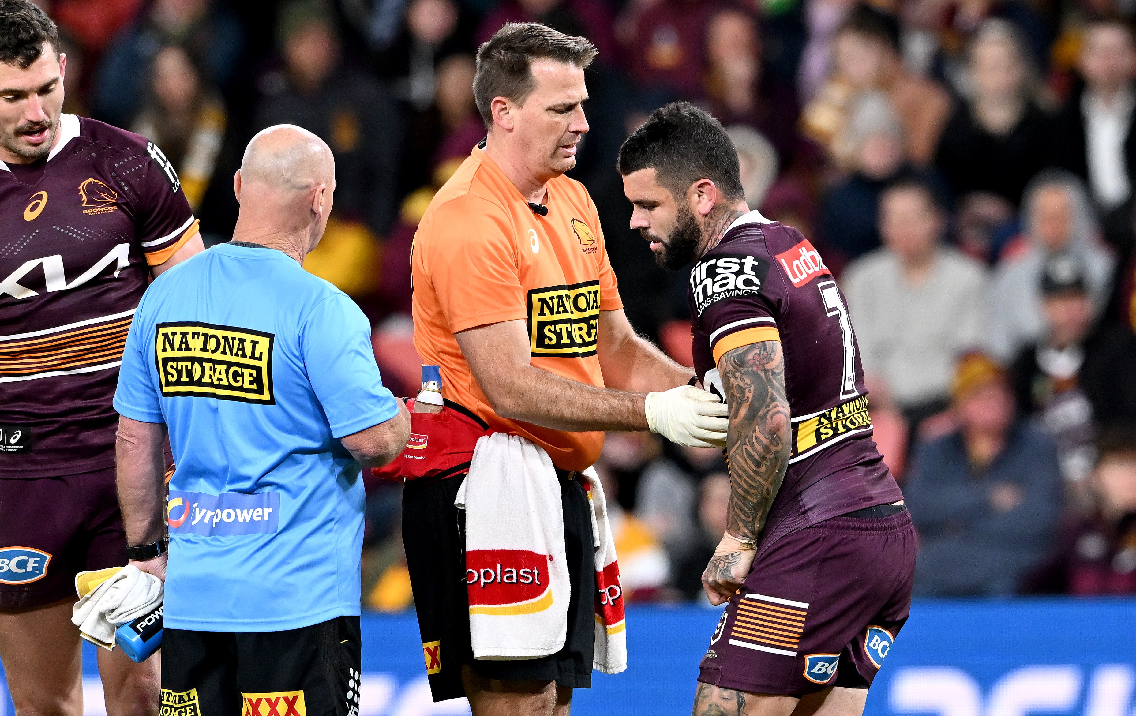 Already without Kotoni Staggs, Kurt Capewell and Selwyn Cobbo, who did not back up after Wednesday's State of Origin opener, the Broncos lost halfback and captain Adam Reynolds to a rib injury, Blues prop Payne Haas to a shoulder issue, and centre Herbie Farnworth left the game let with a nasty looking bicep complaint.