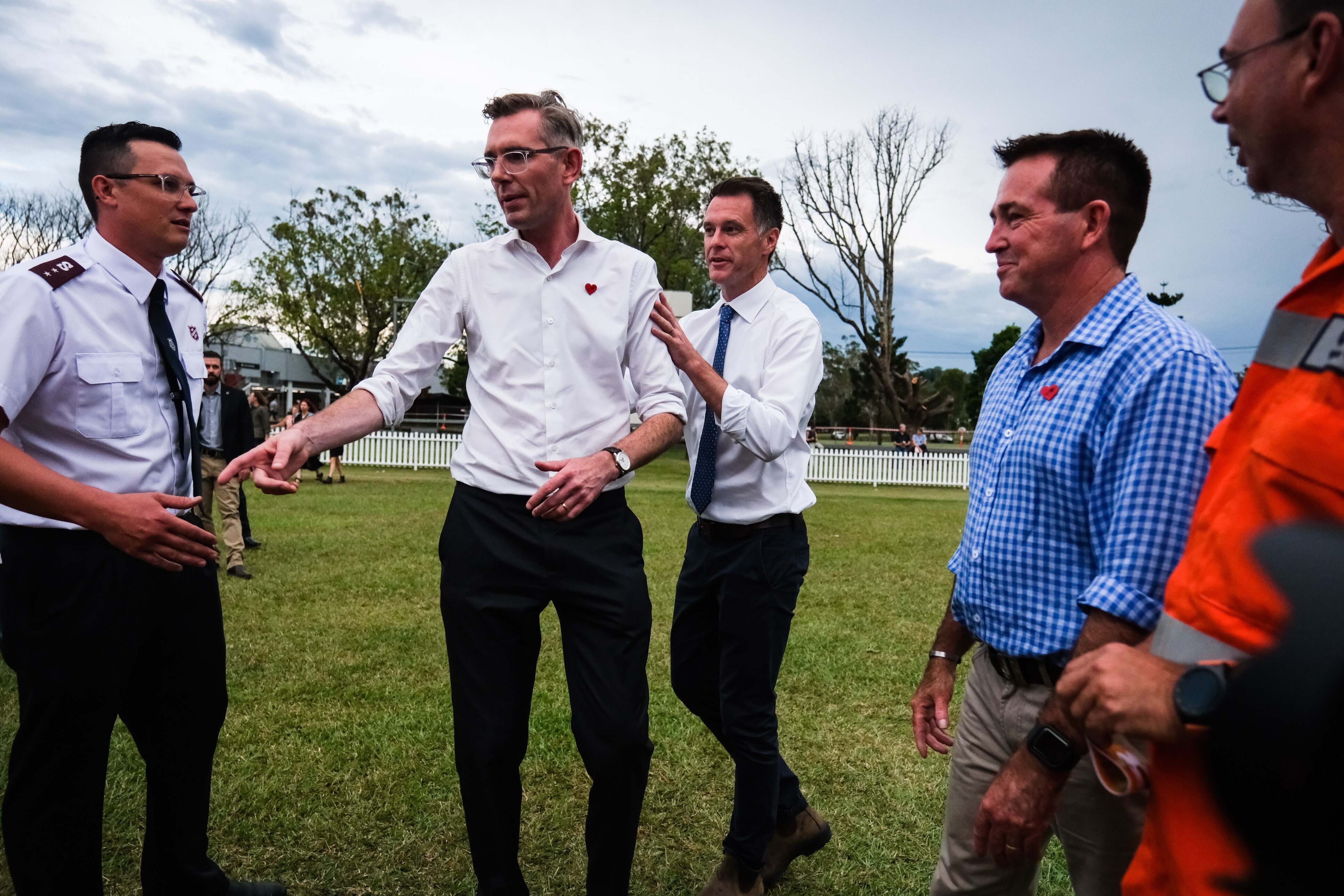 Premier Dominic Perrottet and Opposition Leader Chris Minns showed a rare moment of solidarity by attending, and joining conversations with State Emergency Service volunteers about the anniversary.