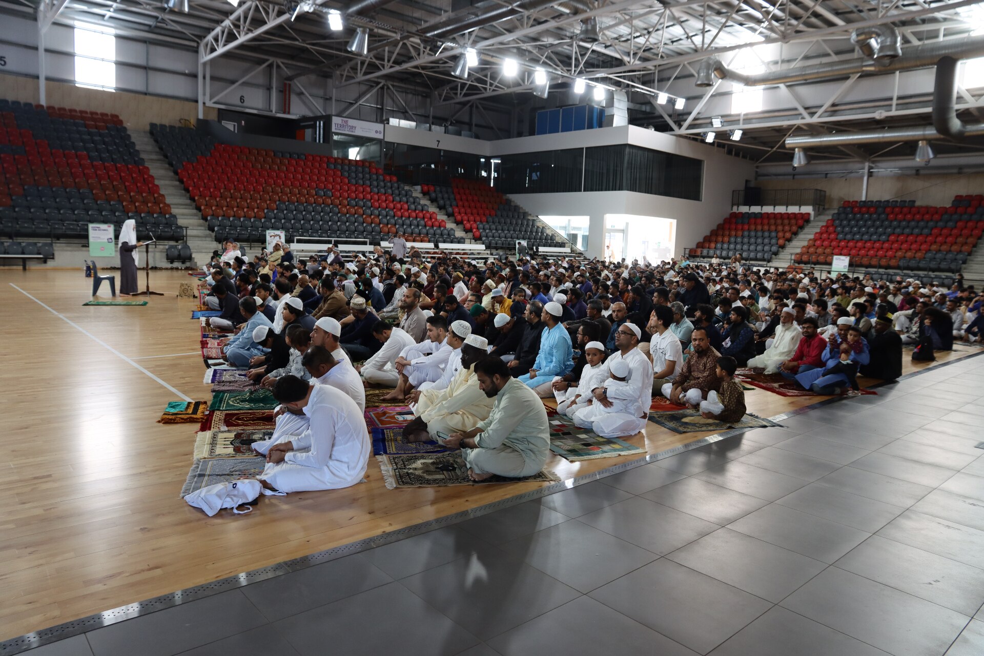 Around 1,500 Muslims gathered at a stadium in Darwin's north on Saturday morning to attend a special prayer service for Eid al-Adha, which is also known as the Festival of Sacrifice, after setting up their sacrificial and charity arrangements.