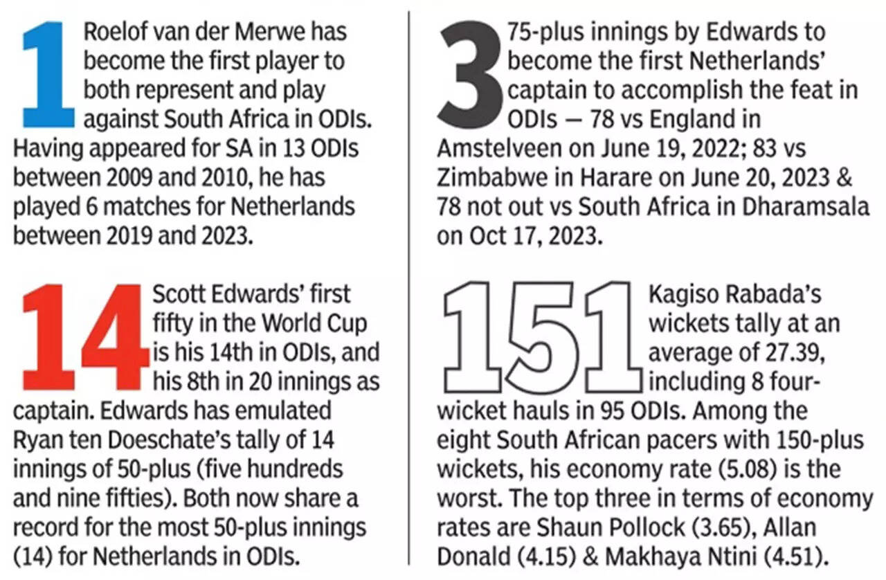 NEW DELHI: A heroic 69-ball 78 rescue effort by skipper Scott Edwards was followed by an all-round bowling performance as European outsiders Netherlands humiliated South Africa for a famous win in ODI World Cup Match 15 in Dharamsala on Tuesday.