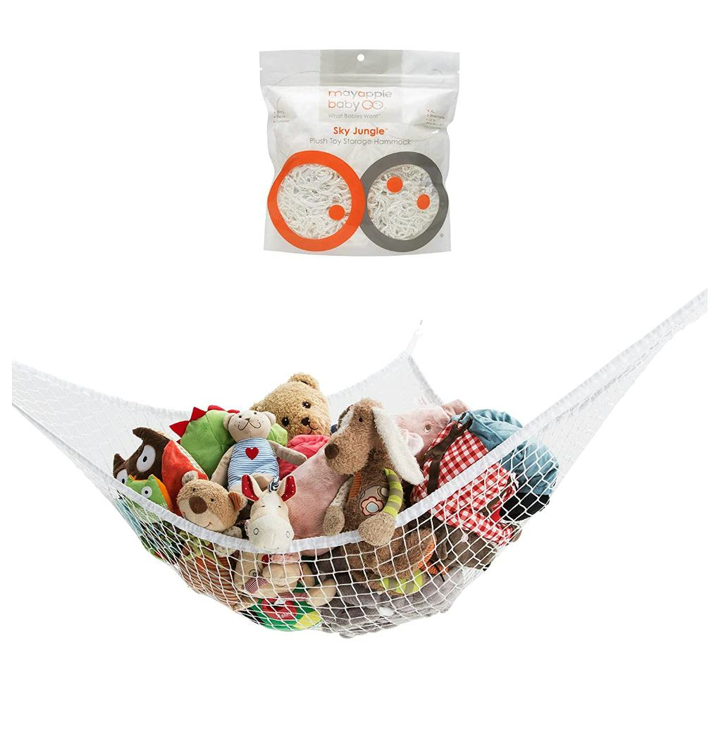 This minimalist storage hammock will instantly make that pile of stuffed animals look like an organized (and adorable) decor piece in your home. The mesh design lets you see all of the small stuffed animals that might get stuck at the bottom. It also comes with sturdy hardware and rip-resistant fabric, in case you have a lot of stray stuffies.