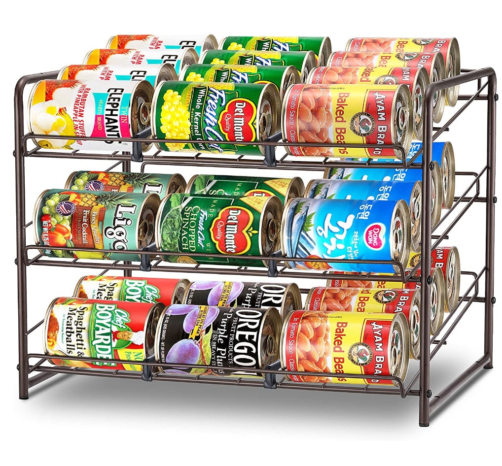 Stick this can organizer in your pantry or cabinet, and you won’t have to pull out every single soup can when you’re searching for black beans or coconut milk. The tilted wire design lets you stack similar canned goods in the same row, and you can easily see all of the ones at the back.