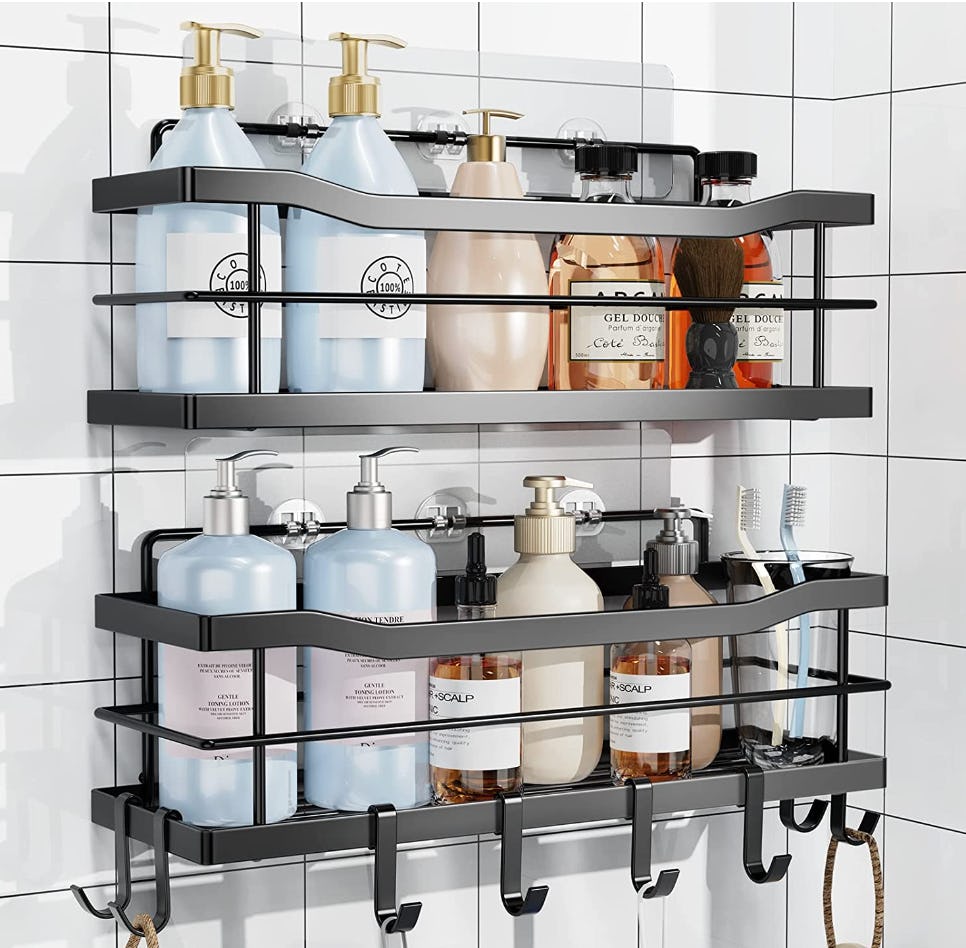 These sleek, matte black stick-on shelves for your shower or kitchen