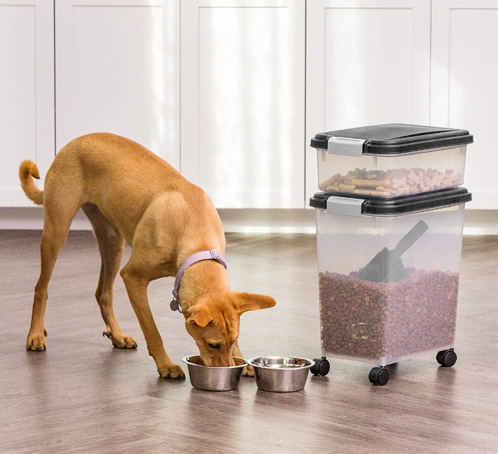 This rolling, airtight set for the tidiest dog food station