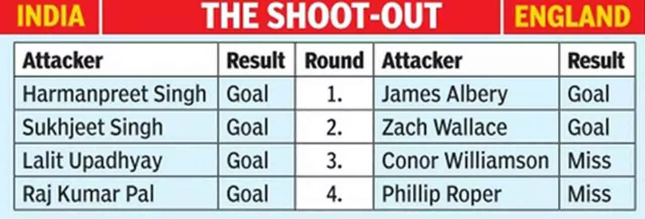 The Indians, who were forced to fall back quickly to negate Britain's numerical advantage, managed just four penalty corners while Britain had 10 without success. The fourth quarter was all about Britain seeing their attacks fade away in vain as Sreejesh was in no mood to concede again. The last of the many saves from the champion custodian came in the 60th minute and the Indians celebrated. And come the tie-breaker, Sreejesh ensured that it was no premature celebration.