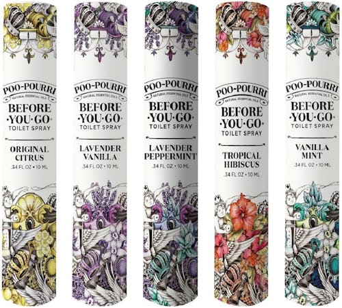 Poo-Pourri is a revolutionary bathroom spray that (when spritzed in the toilet before you go) traps odors underneath the surface of the water, so you can flush them away without a trace. This travel set includes five scents in compact, TSA-approved bottles. That way, you can stash them in your suitcase, purse, and work desk, or you can gift them to everyone as stocking stuffers.