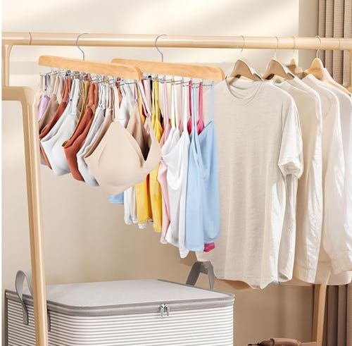 Instead of slanted bars that slip, these wooden hangers have swiveling hooks that turn up at the ends with snag-resistant caps. As a result, each one holds up to 10 tank tops, camis, bras, or spaghetti-strap dresses, so you can maximize storage space in your closet while browsing your whole collection — and without having to pick them up off the floor.