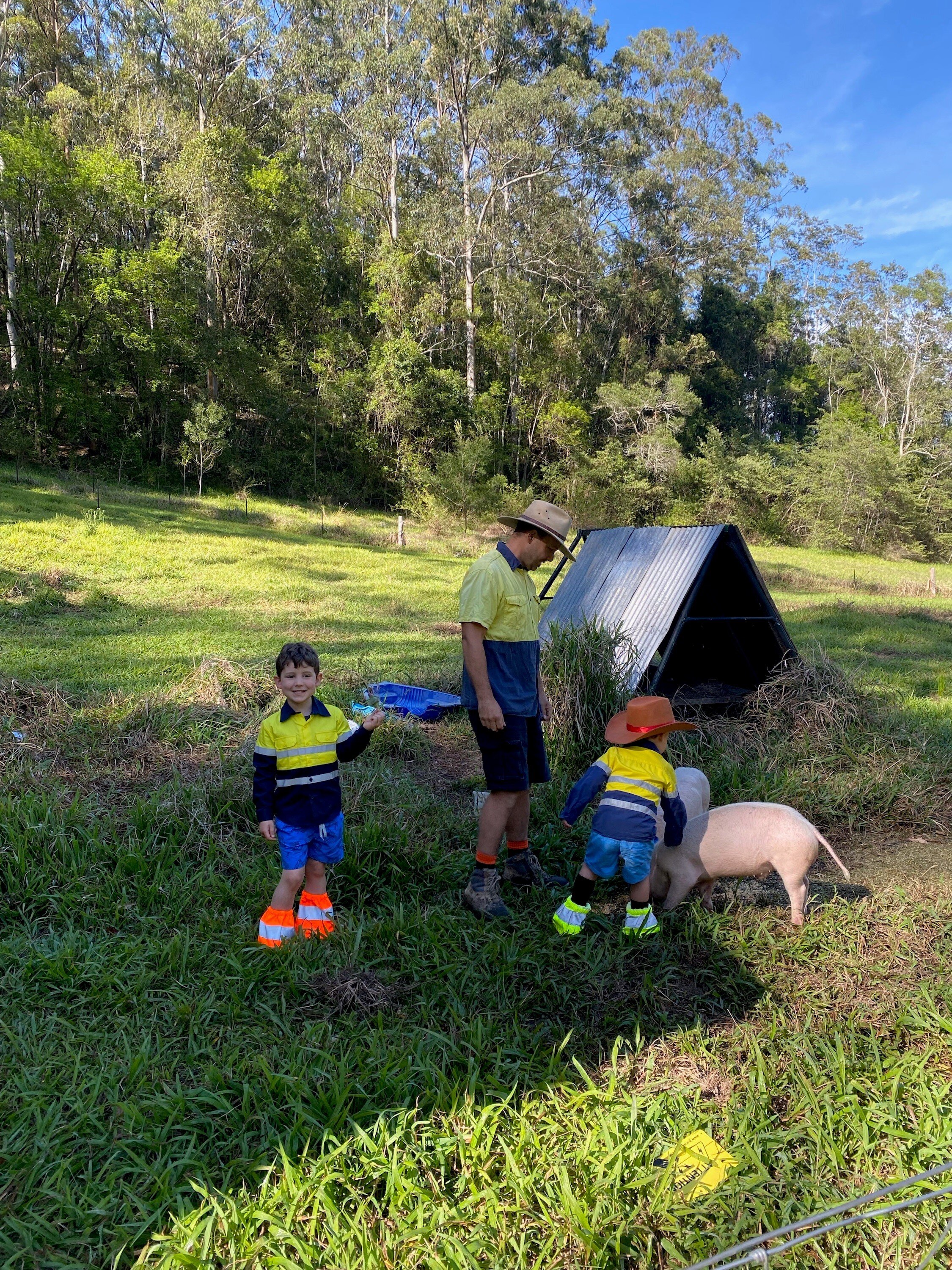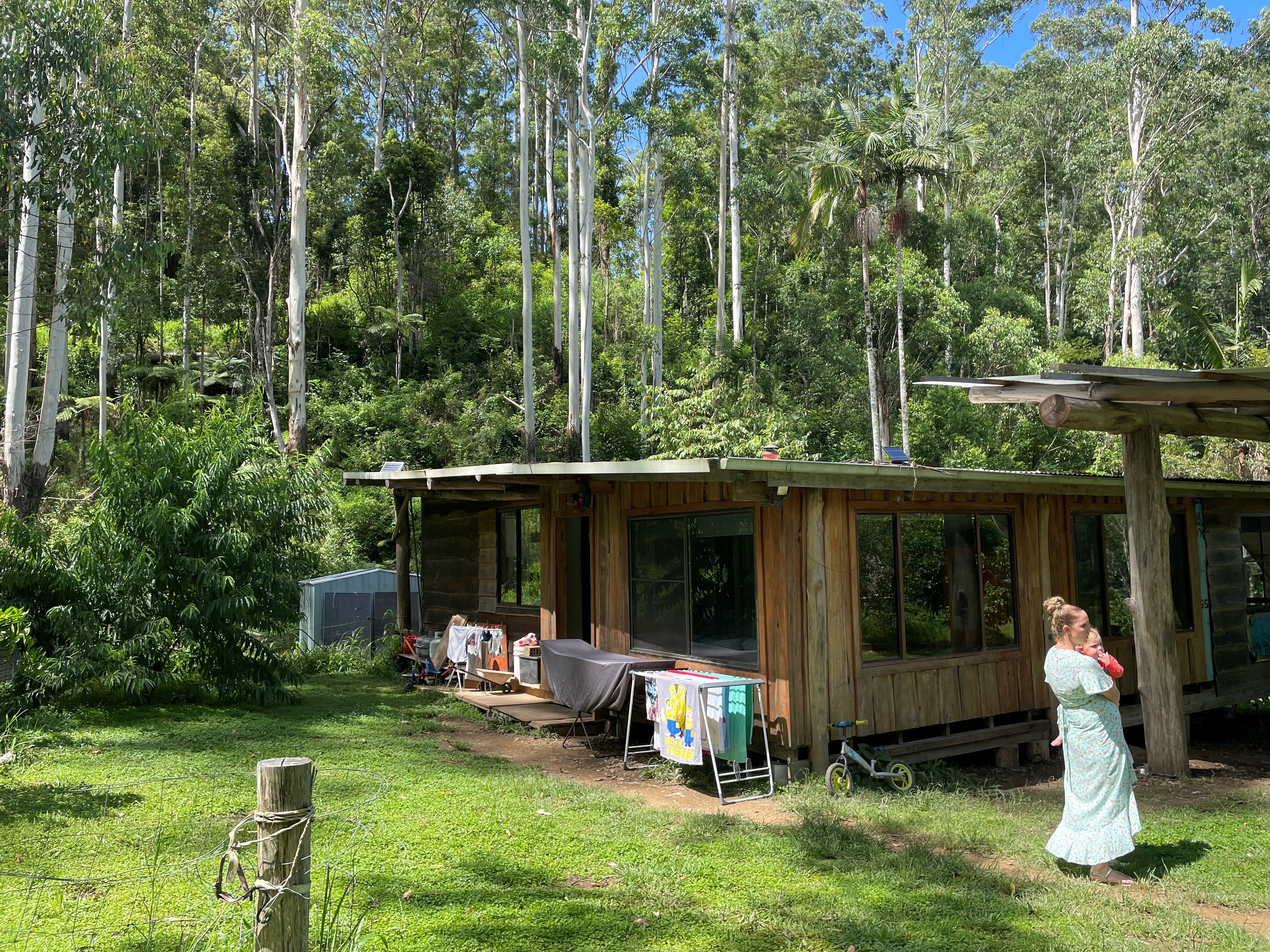 It's a typical day at their off-grid property in the hills of Upper Lansdowne on the New South Wales Mid North Coast.