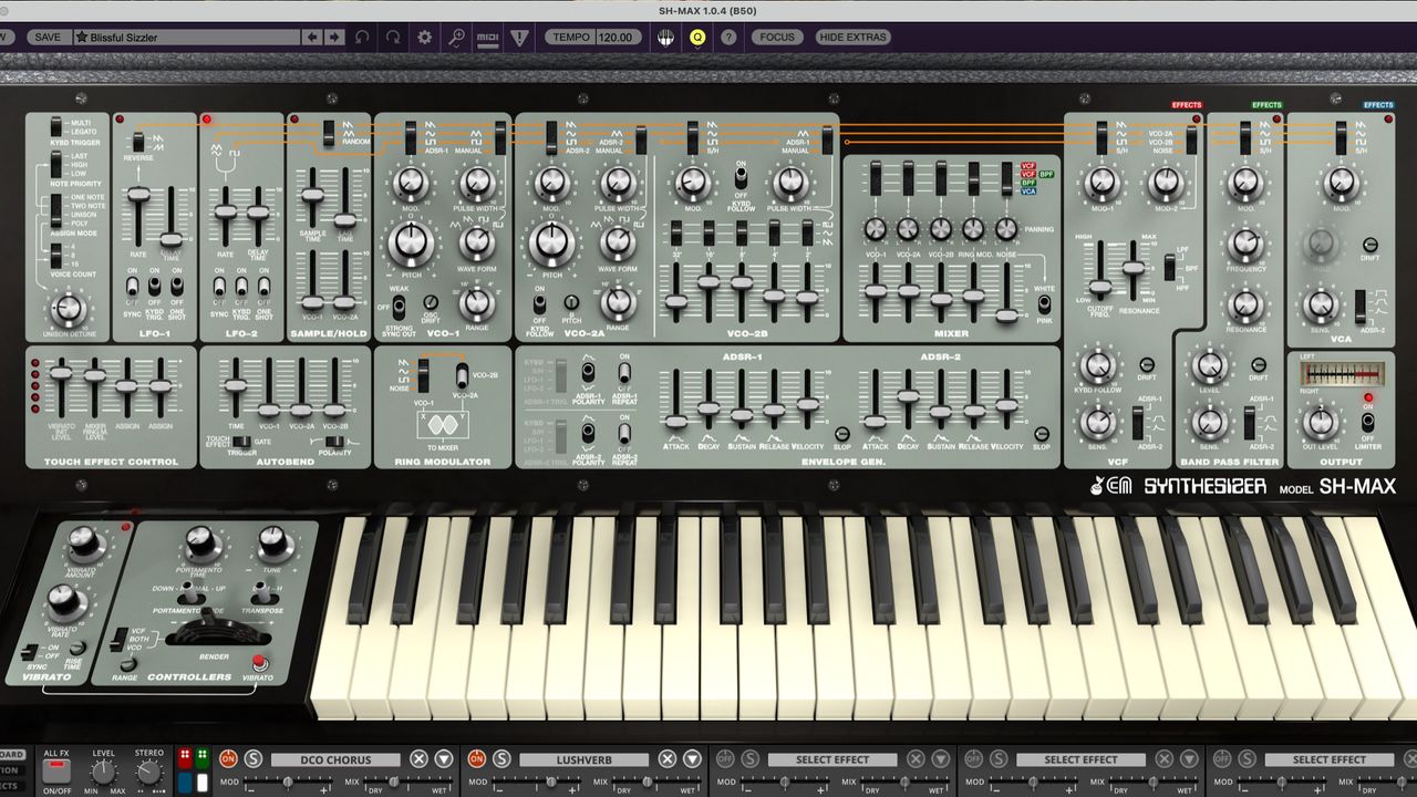 SH-MAX is a fairly literal description of what we have here, being a blend of the SH-3a, SH-5 and SH-7 synths, all culled from the '70s and resplendent in their green/grey colour scheme. You can even dive into the settings to choose the exact colour scheme for each model, if the default shade doesn’t chime with your desktop aesthetic! While there are clearly similarities between these three machines (and the later, classic SH-101 from 1982), it's generally recognised that the earlier models in the SH series had a slightly beefier sound, and this was in no small part due to their interesting design and makeup.
