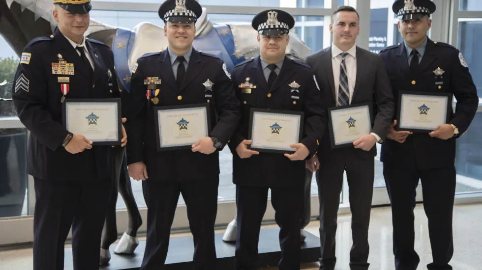 Along with Morales, Officers Roger Ferreira, Brayan Jauregui and Daniel McAuliffe, as well as Sgt. Mathew Lopez, received awards Thursday from the Chicago Police Memorial Foundation during a ceremony at the Patrolmen’s Federal Credit Union in the West Loop.