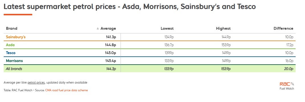 13:30 , Alex RossAs motorists face ongoing hikes at the petrol pumps, RAC has compiled a list of the prices charged at major supermarkets.