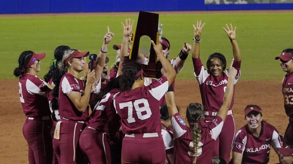 Kinzie Hansen and Grace Lyons hit three-run homers, Jayda Coleman made spectacular defensive plays and No. 1 seed Oklahoma defeated unseeded Texas 10-5 on Thursday night to win its second straight title.