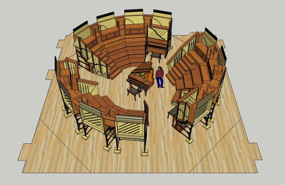 Work has started inside the Old Royal High School on Pianodrome’s latest amphitheatre, which when complete will be a 10 metre-wide circular structure made out of 40 old pianos.