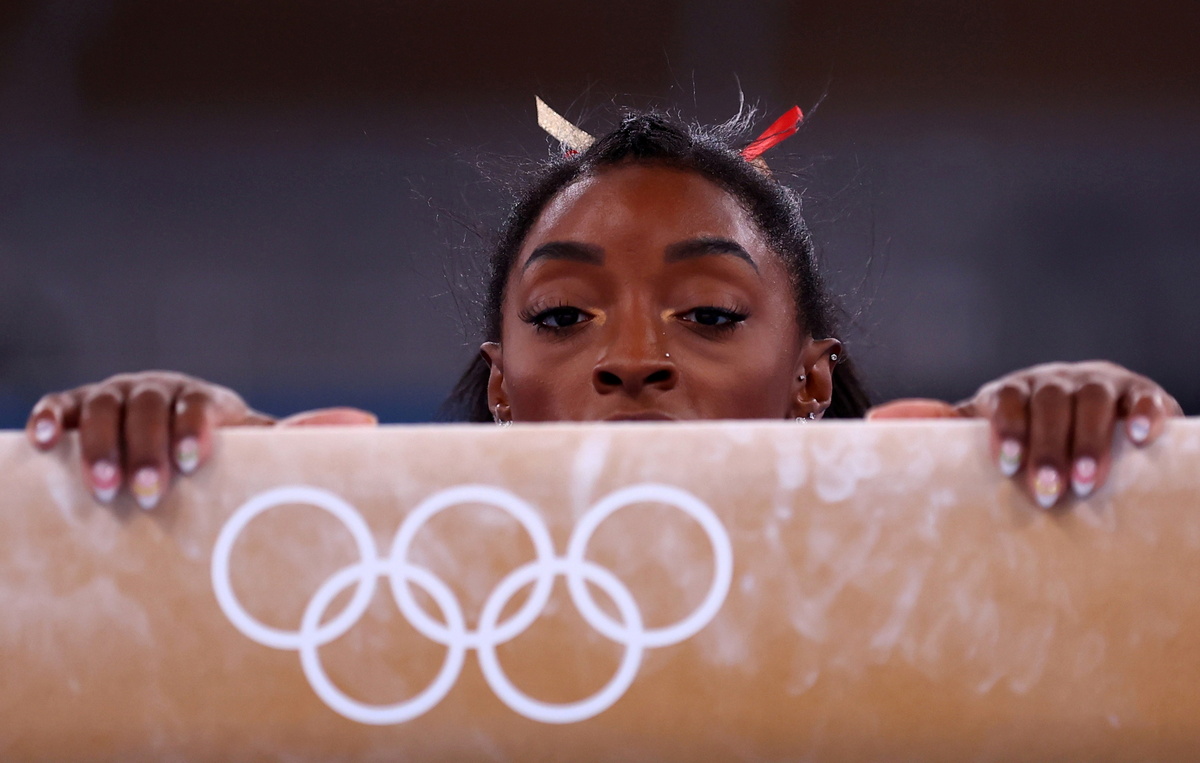 Tokyo 2020 Olympics - Gymnastics - Artistic - Women's Beam - Qualification - Ariake Gymnastics Centre, Tokyo, Japan - July 25, 2021. Simone Biles of the United States competes on the balance beam REUTERS/Mike Blake