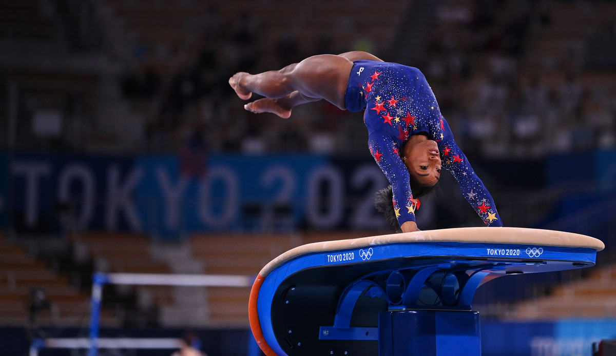 Tokyo 2020 Olympics - Gymnastics - Artistic - Women's Vault - Qualification - Ariake Gymnastics Centre, Tokyo, Japan - July 25, 2021. Simone Biles of the United States in action on the vault. REUTERS/Dylan Martinez TPX IMAGES OF THE DAY