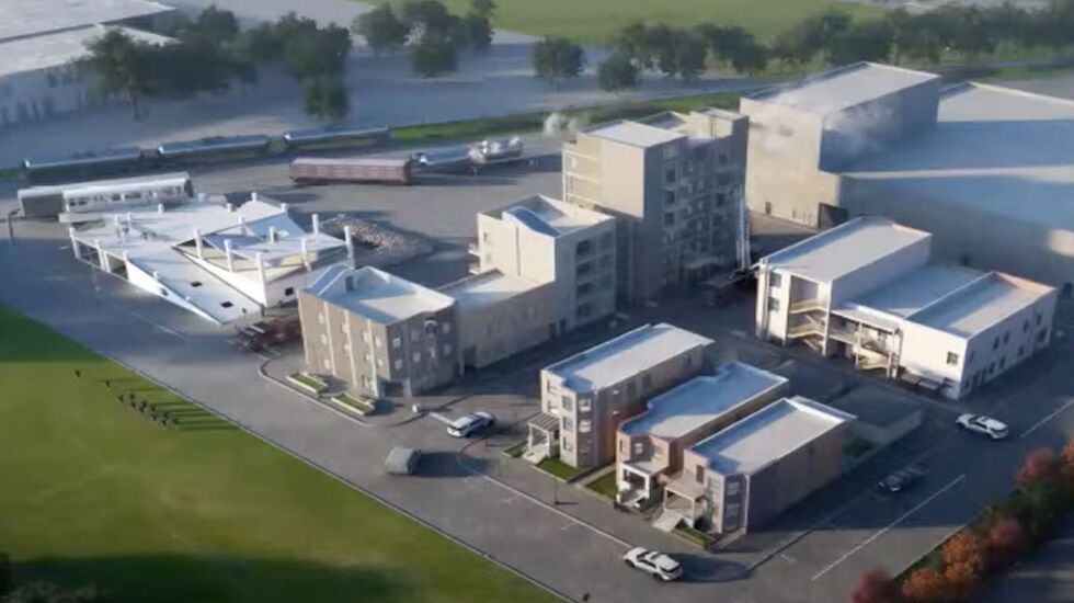 The “tactical scenario village,” sort of like a movie set, includes a pretend city block complete with a six-story burn tower and a car crash area to simulate emergency rescues.