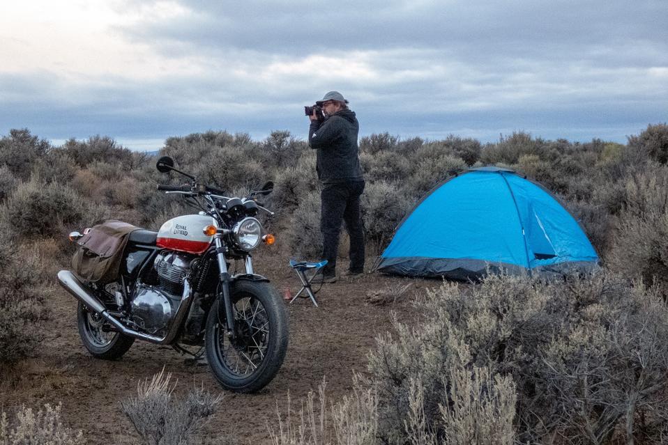 No matter what bike I have, I always like to see what kind of long-distance capability it possesses, and in 2021 I kitted out the INT650 with a few touring togs, including some crash/highway bars, a firmer Royal Enfield touring seat (thankfully identical in appearance to the stock seat), adjustable mirrors, saddlebags, a small fly screen and a few other bits. Overall, the appearance of the INT650 stayed the same, and I mounted a long, multi-day trip on the bike out to Eastern Oregon.