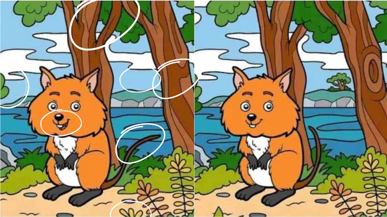 Do you think you have a keen eye for detail? Here's a fun challenge to test just how sharp your mind really is. In this brain teaser, two adorable foxes sit side by side, surrounded by trees, water, and a footpath.