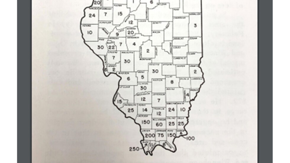 Earlier, he emailed a nugget from a 1954 publication, “White-Tailed Deer Populations in Illinois (Biological Notes No. 34),” with a county-by-county map of deer populations from the winter of 1950-51, noting, “The entire statewide population was estimated at approximately 3,075 and deer densities were clearly much lower; the five white-tails spotted that year by conservation officers in LaSalle County worked out to roughly one deer per 145,000 acres.”