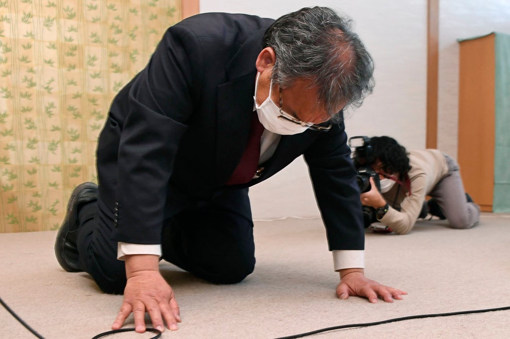 Seiichi Katsurada, president of the tour boat company, knelt on the floor at a news conference to apologize. “We caused a disastrous accident, and I’m very sorry,” he said.