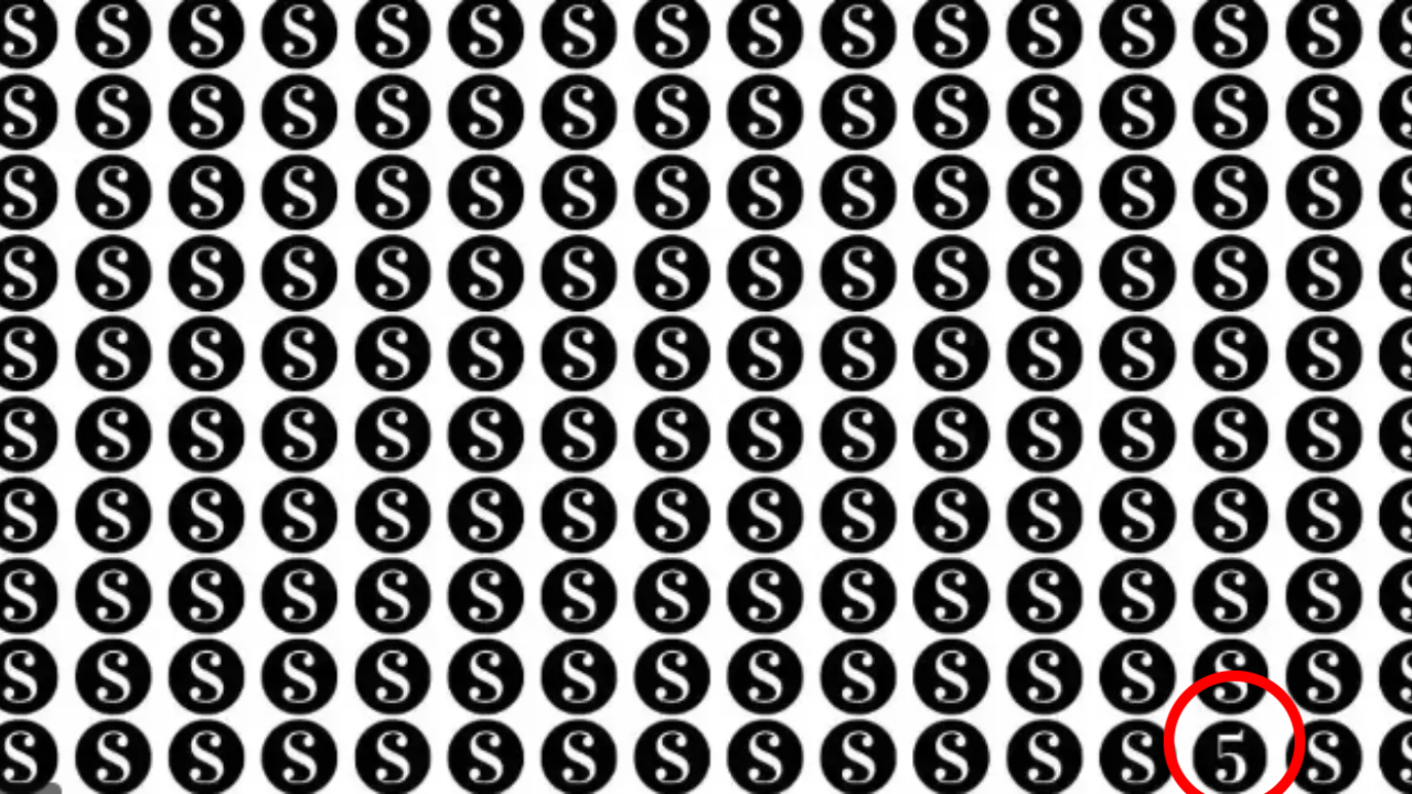 In today’s task, you will see a black-and white screen with tons of S alphabets written on them in circles. Amongst all the mess, you will be able to see a hidden 5 number. Now, your task is to find the hidden number in under 3 seconds and prove that you have a high IQ and hawkeye eyesight. Do not forget that you need to prove that you are different from the others and that you have the power to stand out of the crowd with sharp eyesight.
