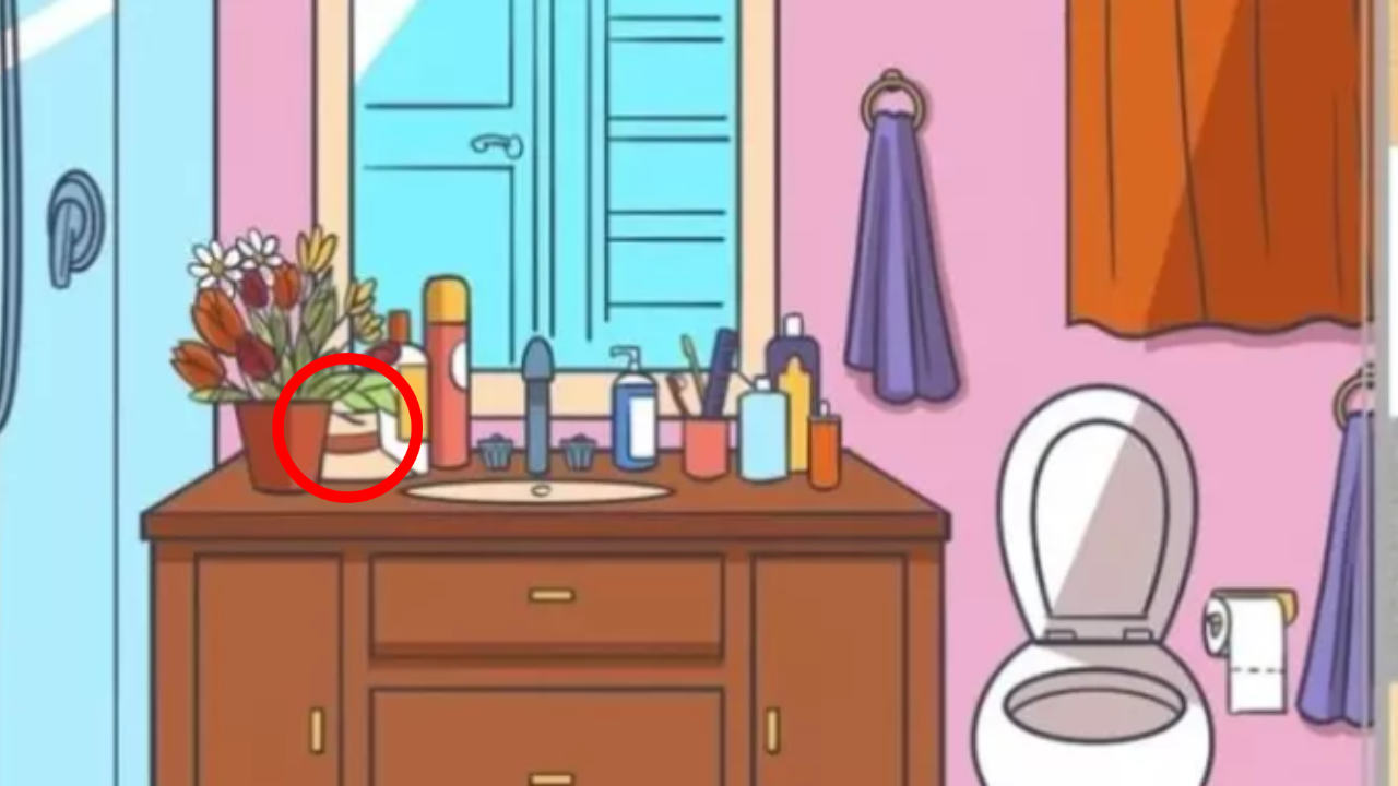 As you stare at the image, you will see a powder washroom setup which has a neat mirror with bottles of shampoos and face wash kept in line, alongside the towel and toothbrush. However, the cabinet has multiple things kept on top, you need to spot a hidden hat amongst all and prove that you have a sharp eyesight. But, remember that you need to solve this task in under 8 seconds.