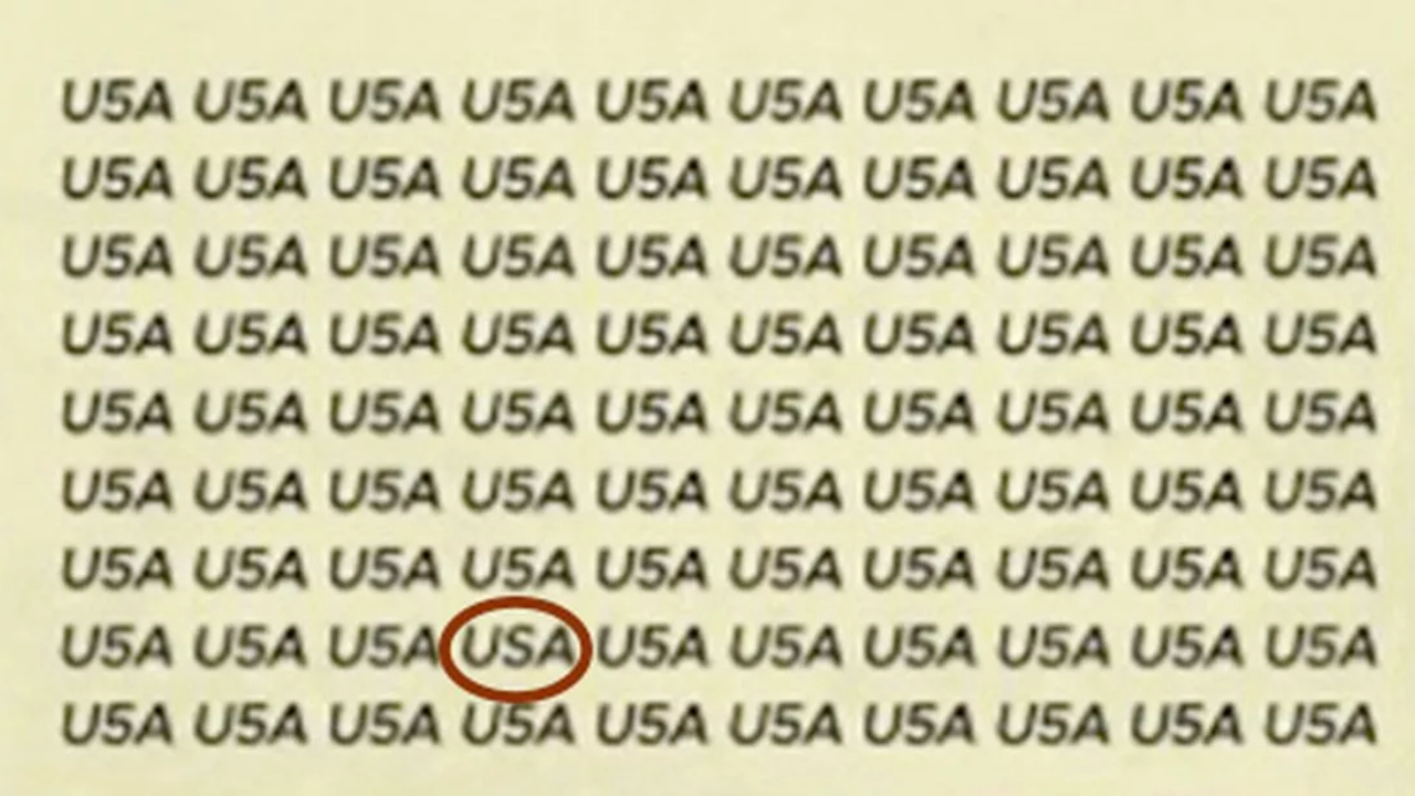 The image comprises alphanumeric U5A in all rows and columns. "The aim here is to find the word USA amid rows and rows of the deceptively similar U5A - and not many people can solve this one quickly," netizens have been challenged.