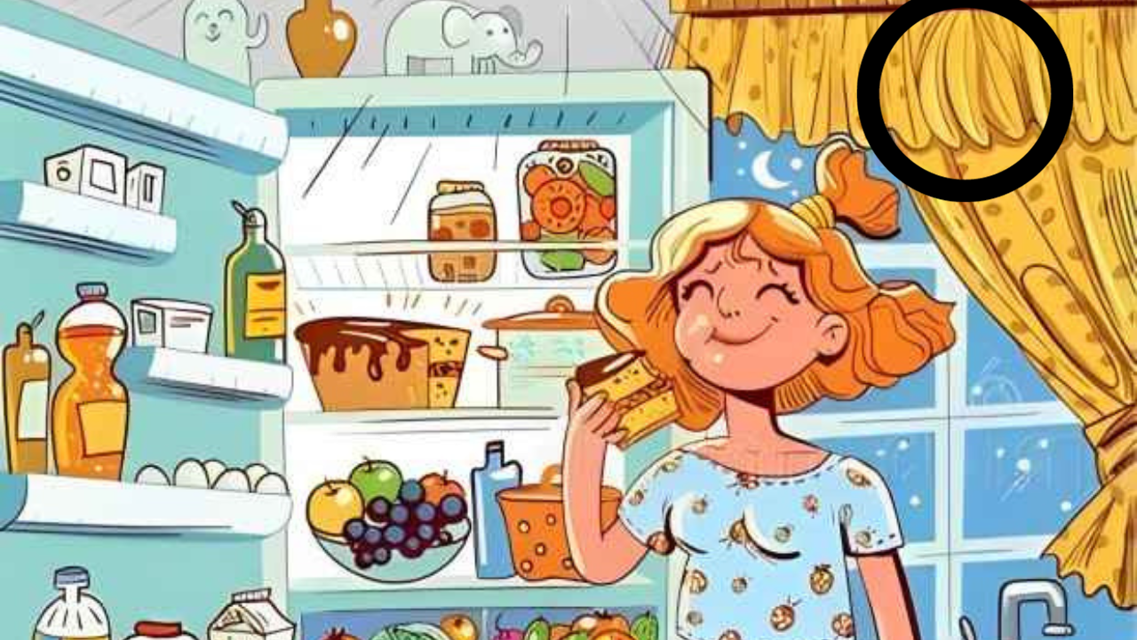 The girl had several bananas stored in her refrigerator, but for some reason, they are gone. Are you able to locate the bananas? This brainteaser puzzle has a time limit of six seconds. Set your timers, then get looking. Best wishes!