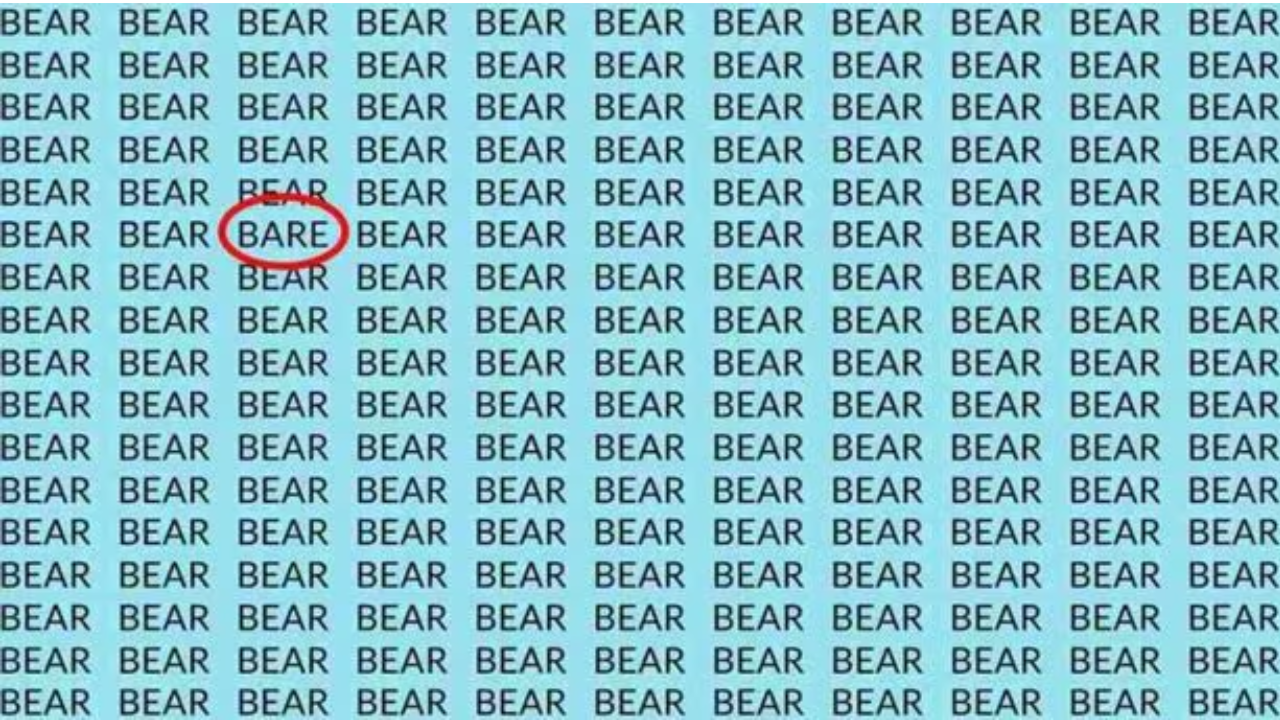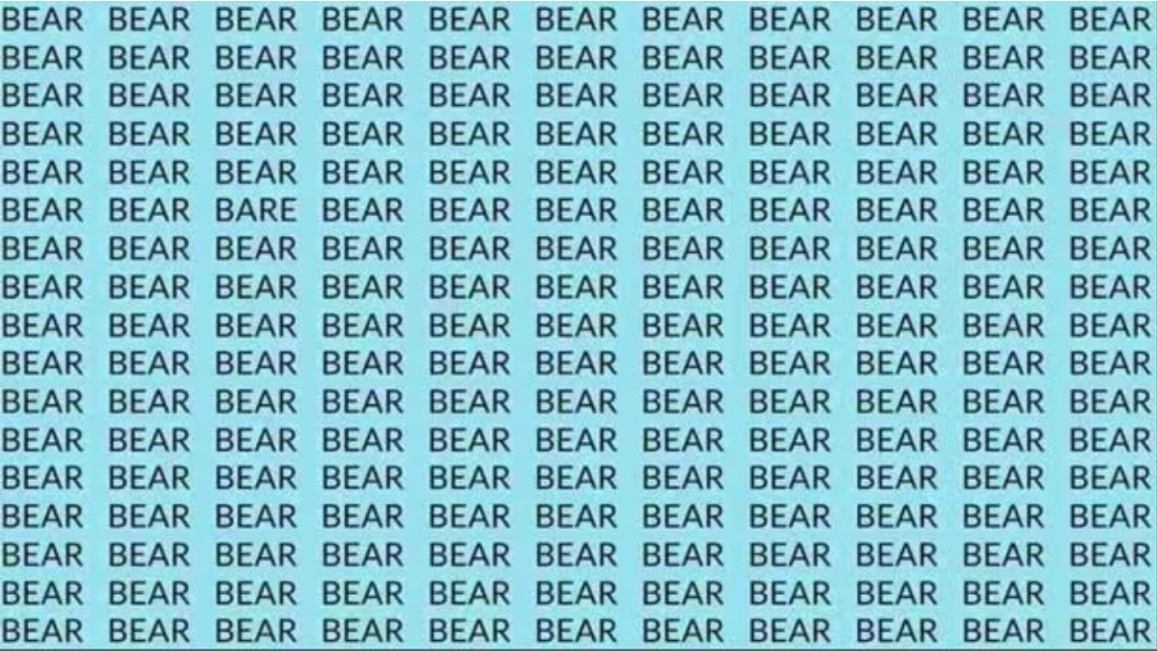 Here's a new challenge for you. In this image there are rows and columns of the word BEAR and the challenge is to find the odd word in it.