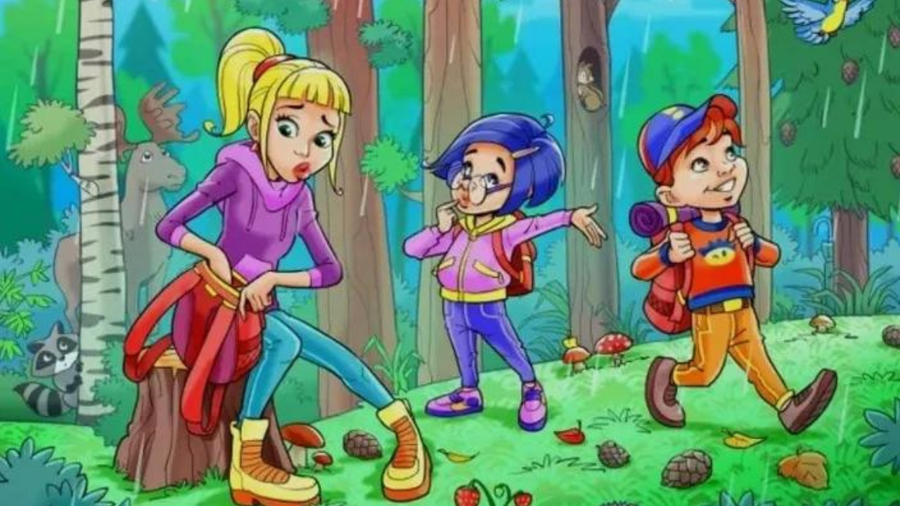 At first glance, the picture seems simple—a forest filled with birds, animals, and three children wearing backpacks. However, the real challenge lies in finding the cleverly hidden umbrella. You might spot a reindeer, a hedgehog, or even an owl perched on a tree, but where is that rogue brolly?