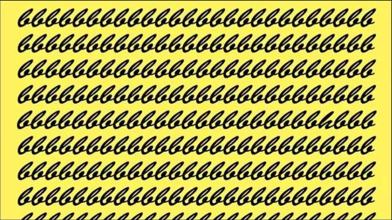 This IQ test uses an optical illusion to assess intelligence and visual perception. The image shows several cursive 'B's arranged in a pattern, and the viewer must find the hidden 'H' within 10 seconds. However, the brain may struggle to perceive the 'H' amongst the 'B's due to the similar shapes.