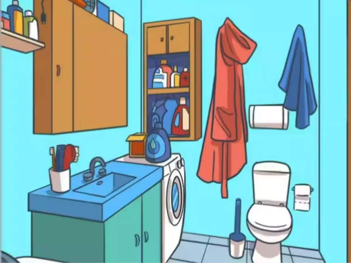 The image of a bathroom with well-organised cabinets for the soap, toothbrush, detergent, and hair dryer is one such optical illusion that is currently trending online. On the wall next to the toilet seat, towels and bathrobes are also visible. Near the washbasin is a washing machine as well. However, a headphone has also been left in the restroom.